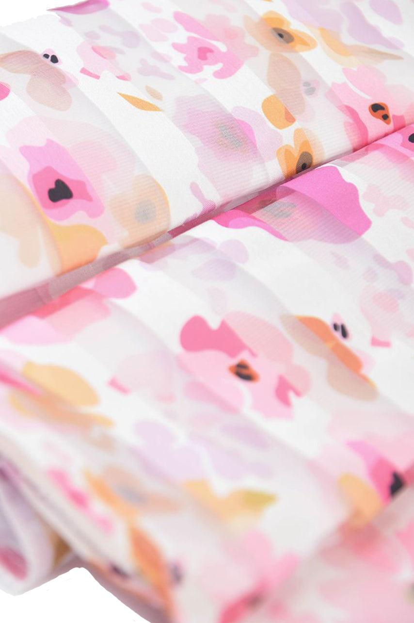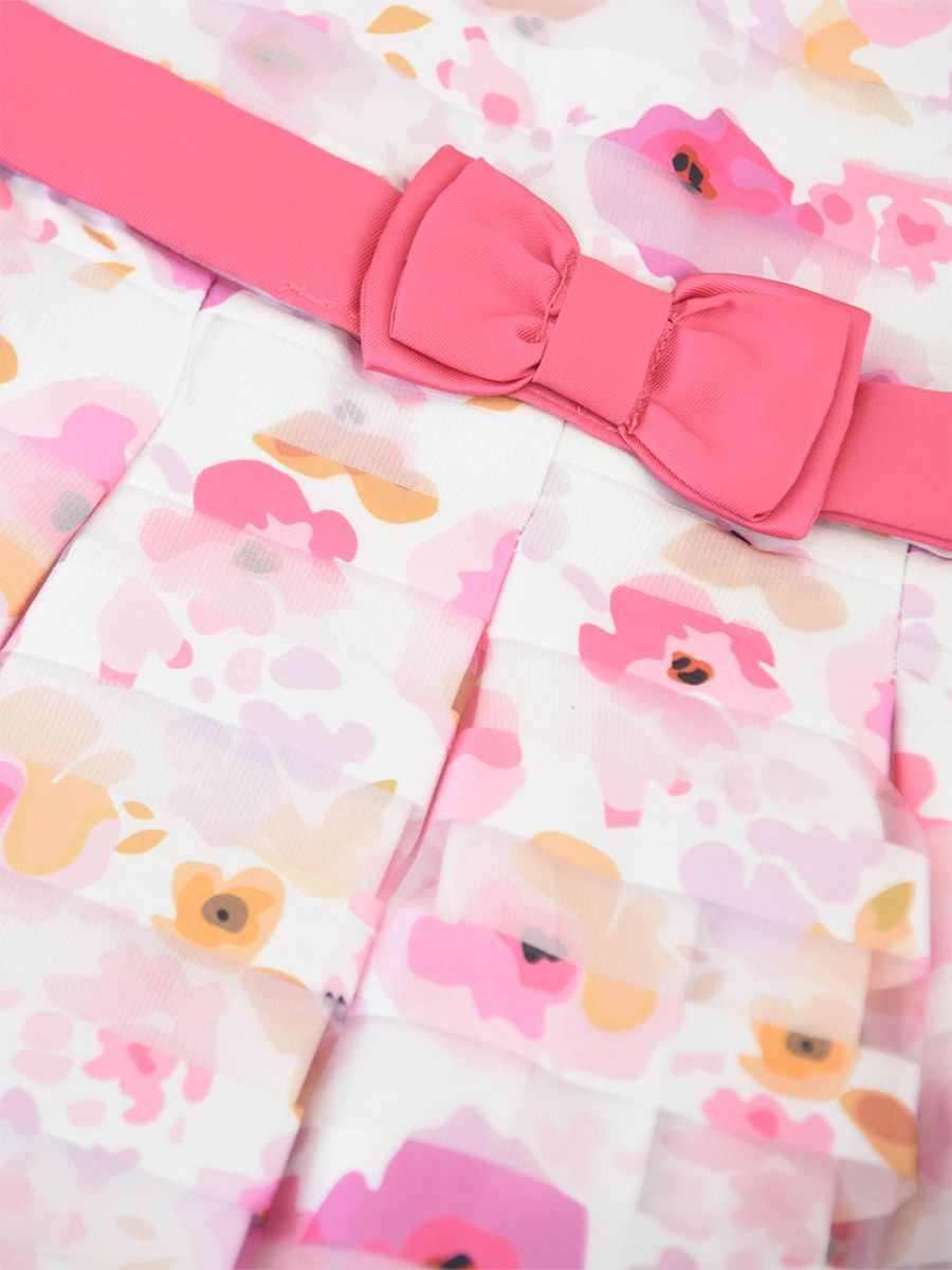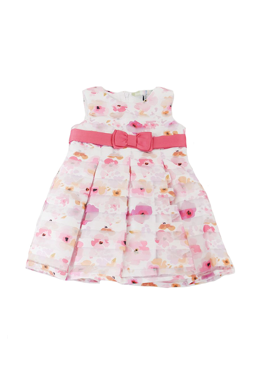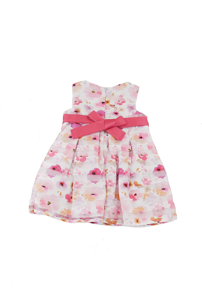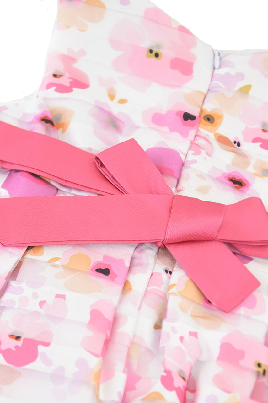 Abito smanicato in cotone con fantasia Allover fiorata . Cintura tinta unita abbinata con fiocco. adatto per ricorrenze Speciali.