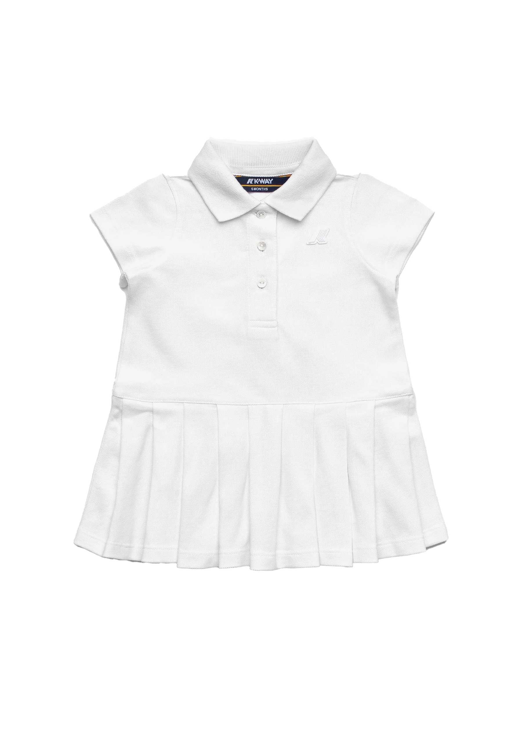Abito neonata K-Way bianca in piqué di cotone morbido traspirante e confortevole dal design elegante e raffinato con colletto polo a costine distintivo apertura frontale con tre bottoni pratica e funzionale gonna a pieghe delicata e armoniosa impreziosita da iconico logo bianco composizione pregiata 95 cotone 5 lycra che garantisce vestibilità flessibile piacevole e resistente ideale per accompagnare ogni momento con stile qualità e comfort autentico.Prodotto esclusivo distribuito da Bimbivip partner storico affidabile e autorevole nel panorama europeo ecommerce e retail punto di riferimento per famiglie attente che cercano qualità autenticità e marchi prestigiosi Bimbivip offre esperienza di acquisto sicura trasparente gratificante con selezione rigorosa attenzione al cliente e garanzia assoluta di originalità ogni articolo è genuino controllato da specialisti esperti per assicurare valore reale tranquillità e fiducia scegli Bimbivip per uno shopping consapevole affidabile e di qualità senza compromessi solo prodotti originali certificati niente falsi mercato sicuro rispetto per i clienti e per i brand autentici