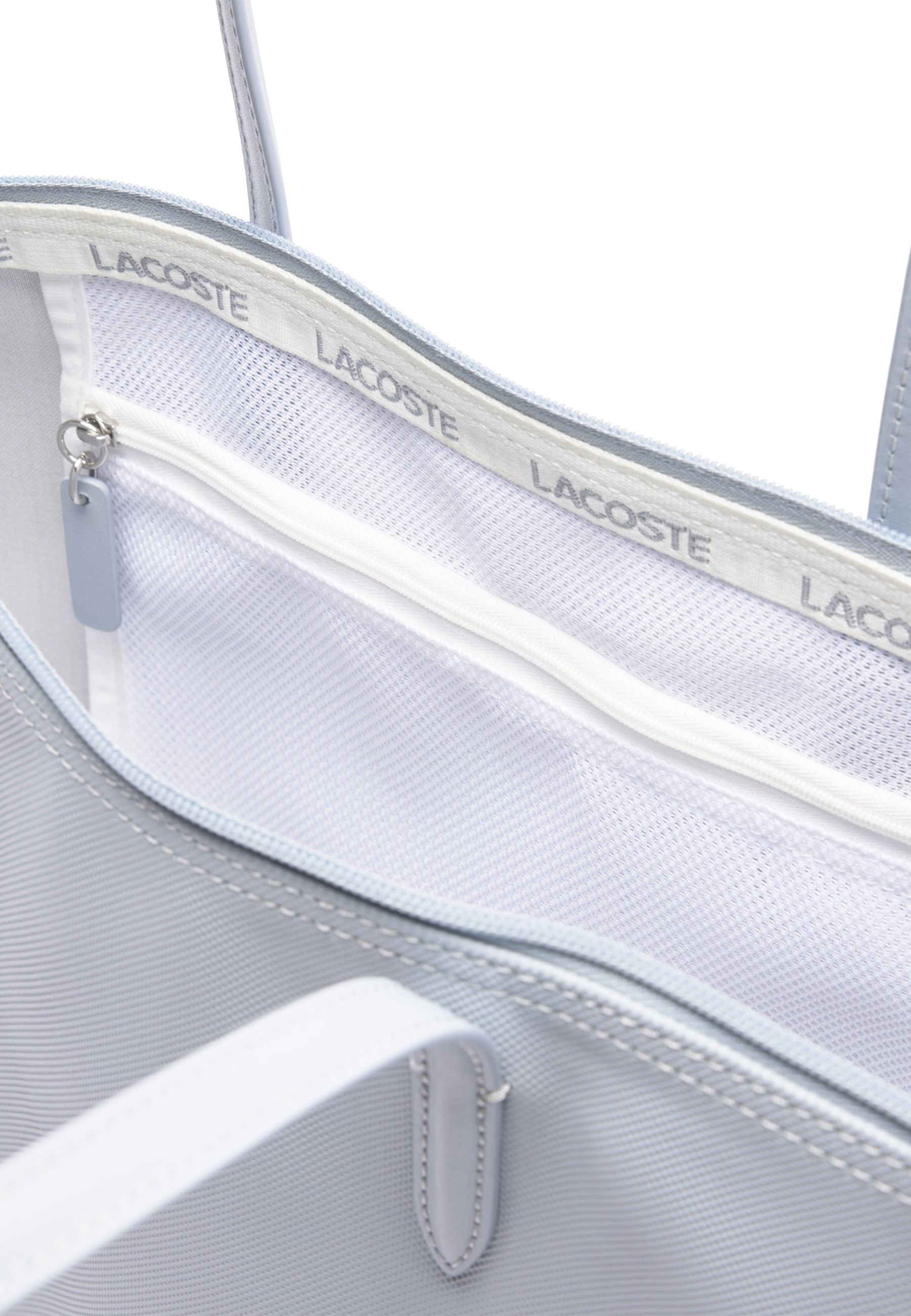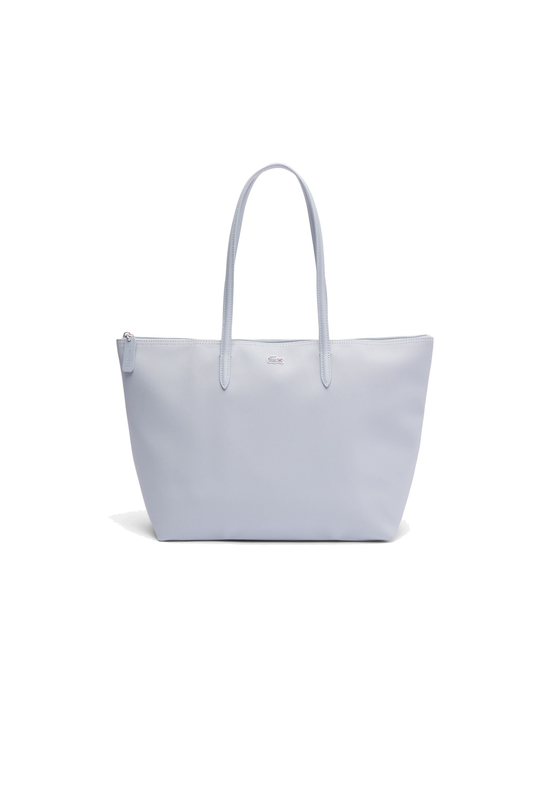 Lacoste Borsa Tinta Unita Logo Effetto Piqué Grigio Chiaro