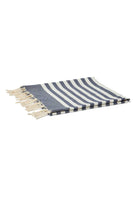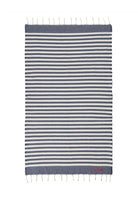 Telo mare in cotone a righe blu impreziosito da eleganti frange e caratterizzato da una straordinaria leggerezza. Ideale per asciugarsi rapidamente dopo un tuffo rinfrescante può trasformarsi anche in un pratico pareo rendendolo un accessorio versatile e indispensabile per ogni vacanza. Realizzato al 100% in cotone offre un equilibrio perfetto tra morbidezza e funzionalità con dimensioni generose di 100 x 200 cm per un comfort senza compromessi.Mc2 St. Barth incarna l’essenza sofisticata e spensierata dell’estate con creazioni dal fascino inconfondibile ispirate al lusso rilassato delle spiagge caraibiche. I suoi tessuti pregiati i colori vibranti e i dettagli raffinati lo rendono un marchio sinonimo di eleganza informale e comfort impareggiabile. Ogni capo è pensato per chi ama distinguersi con uno stile fresco e ricercato evocando atmosfere vacanziere e un’eleganza senza tempo.Partner prestigioso di Mc2 St. Barth è Bimbivip una realtà affermata nel panorama dell’e-commerce e degli store fisici in tutta Europa punto di riferimento per chi cerca esclusività e affidabilità. Grazie alla selezione attenta di marchi di eccellenza Bimbivip garantisce un’esperienza d’acquisto impeccabile unendo qualità stile e attenzione al cliente. Seguire attentamente le istruzioni di lavaggio riportate sull'etichetta all'interno del capo. made in TUNISIA composizione 100%CO