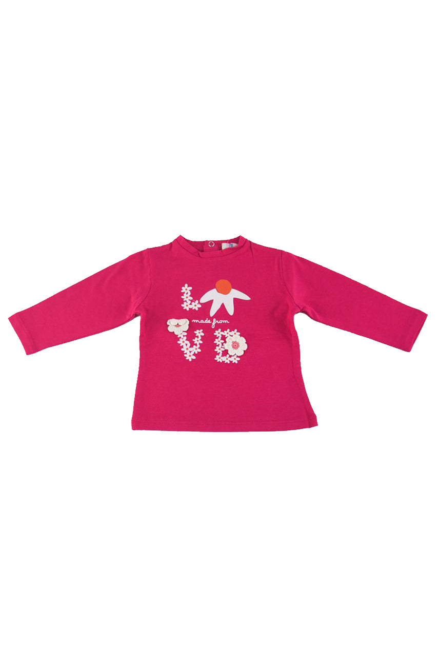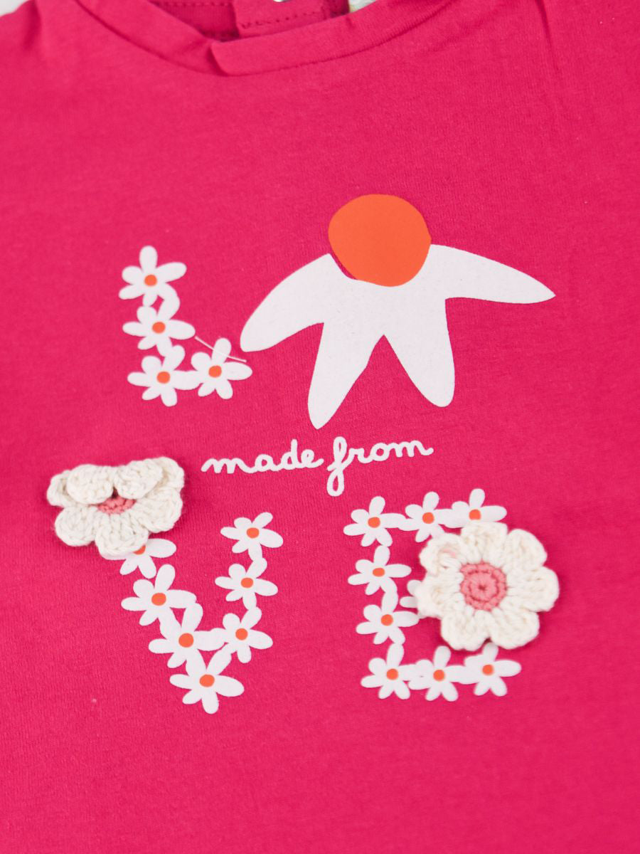 T-shirt girocollo con Bottoni posteriori a pressione. Stampa e applicazione di Patch a uncinetto Capo preferibilmente utilizzabile in inverno LAVARE A 30° IN LAVATRICE - NON STIRARE - NON LAVABILE CON I COLORI CHIARI - NON USARE CANDEGGINA made in Bangladesh composizione 100 % CO