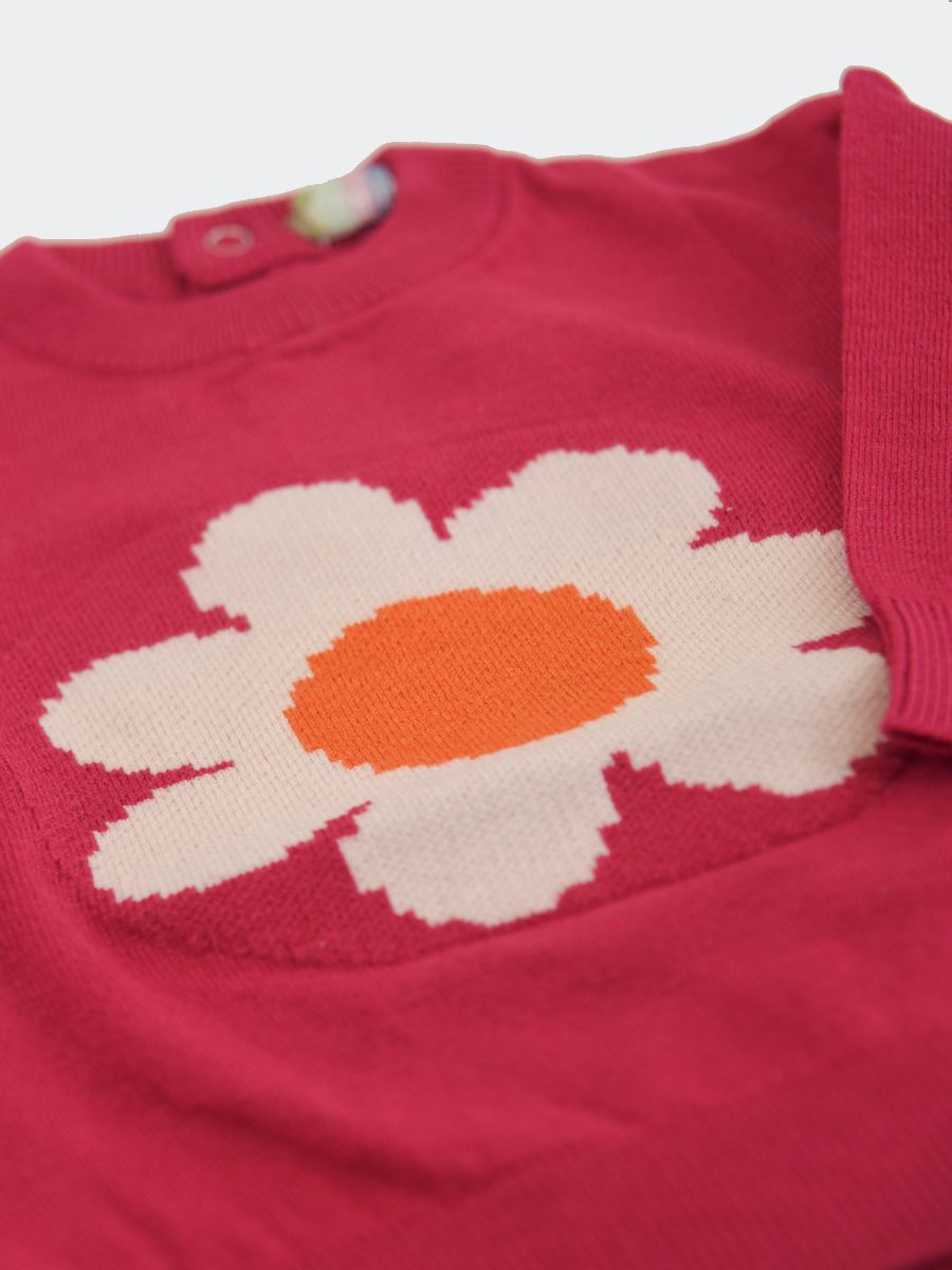 Maglia girocollo Multicolor a tema fiori in morbida maglia con bottoni a pressione nel retro