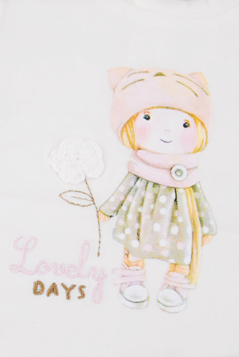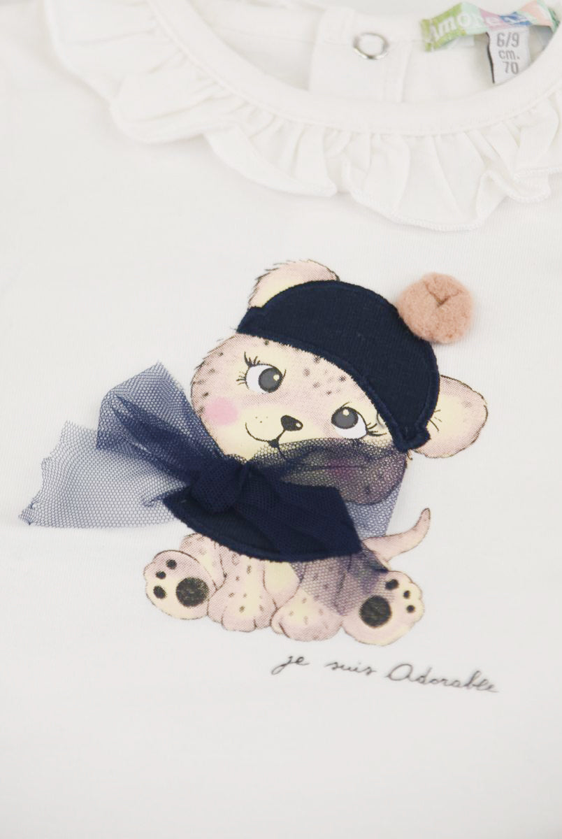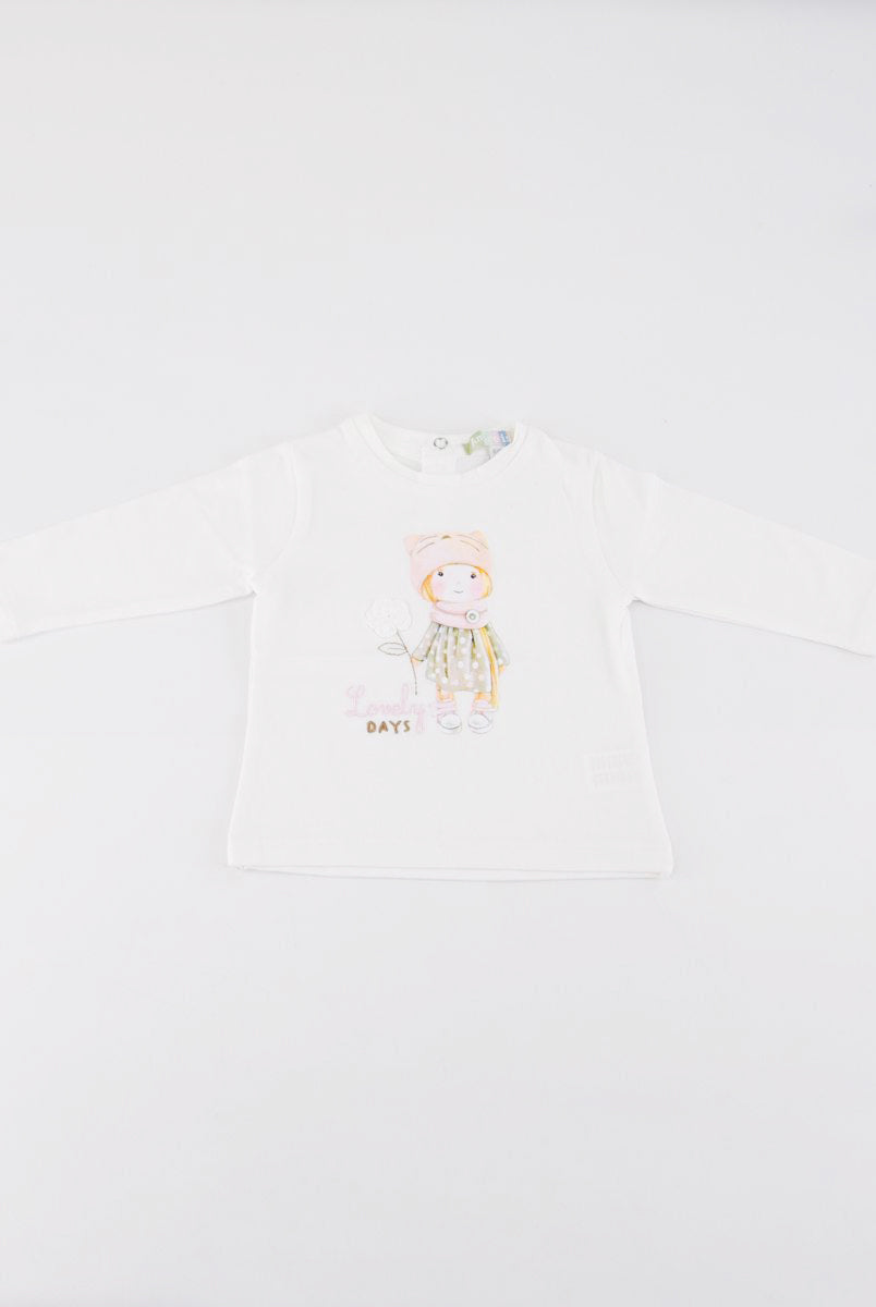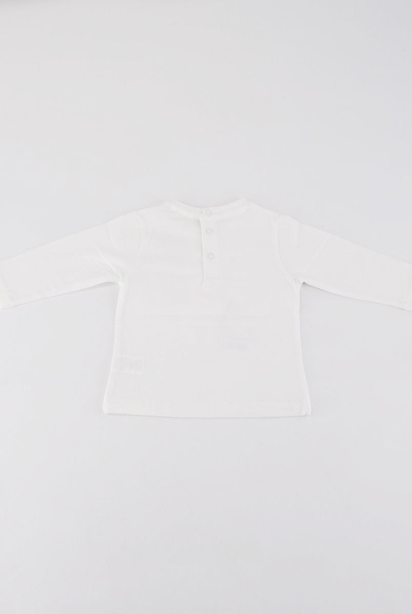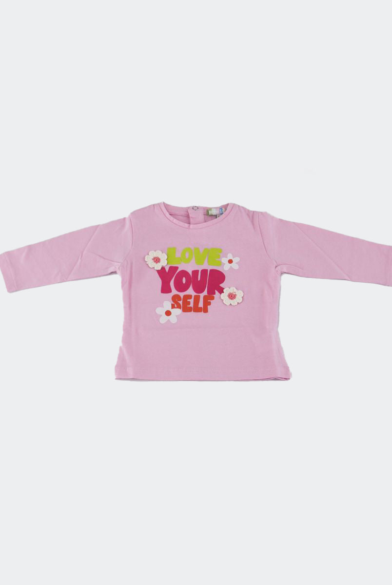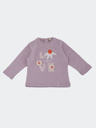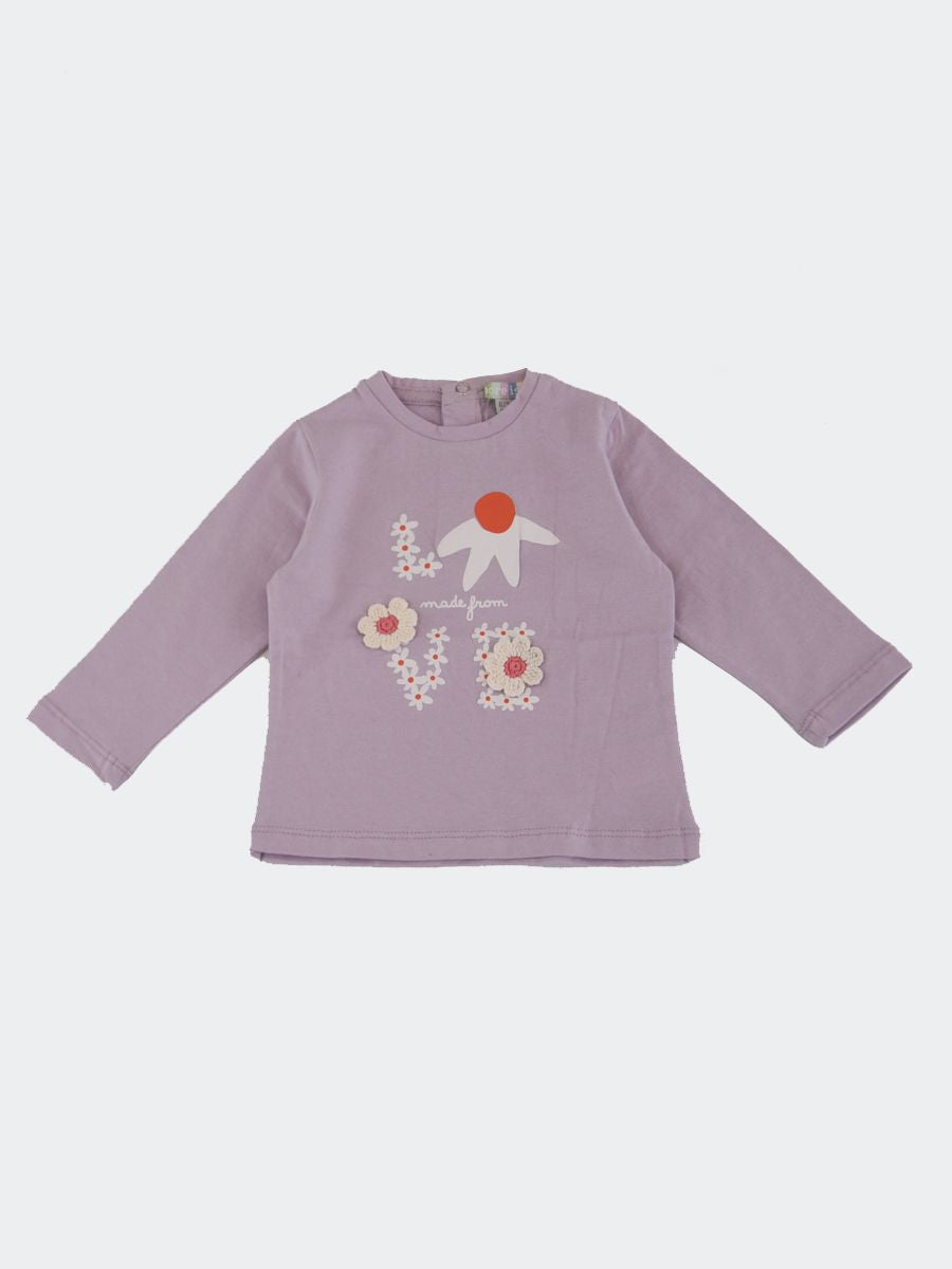 T-shirt con Stampa frontale con fiori applicati. Bottoni a pressione nel retro