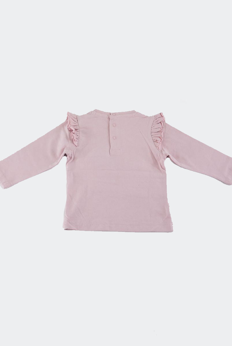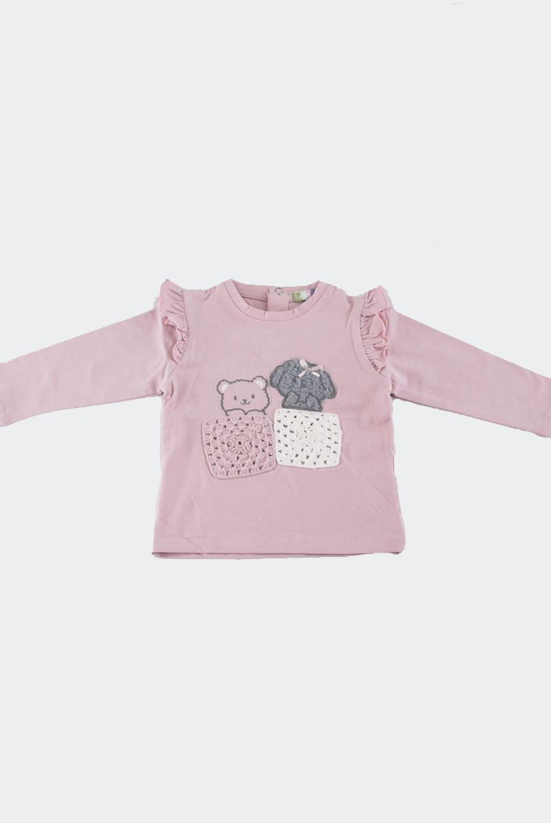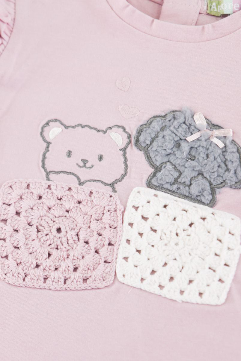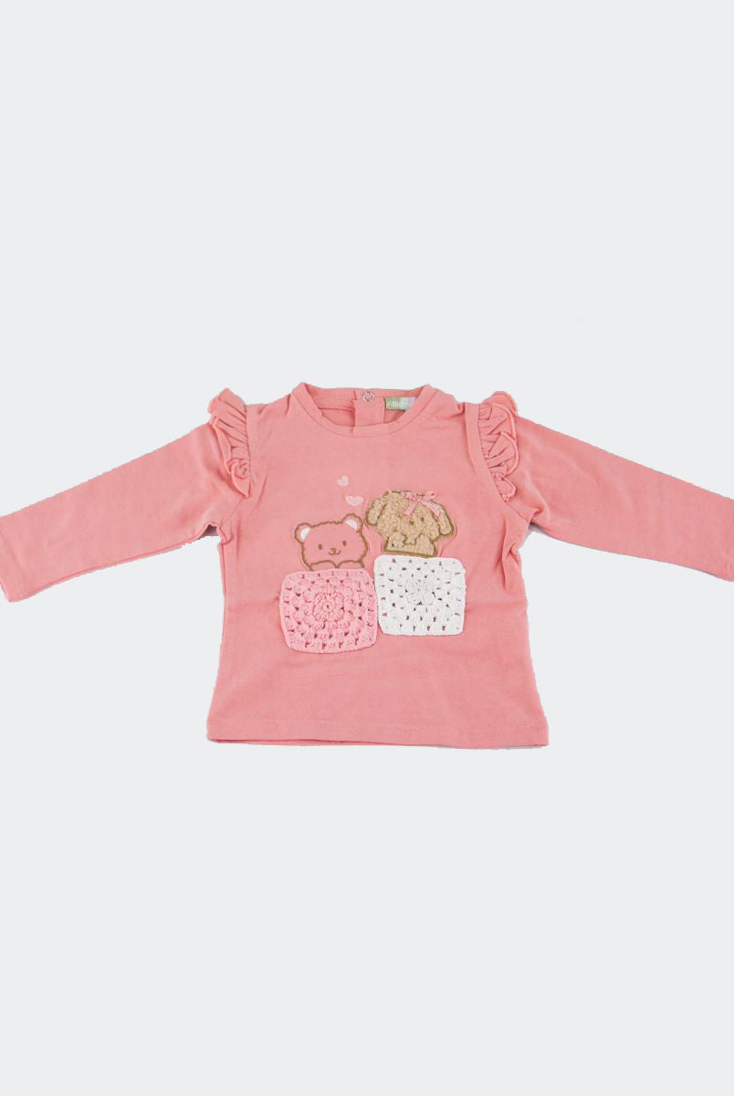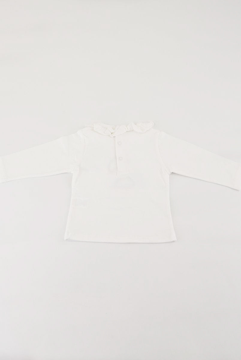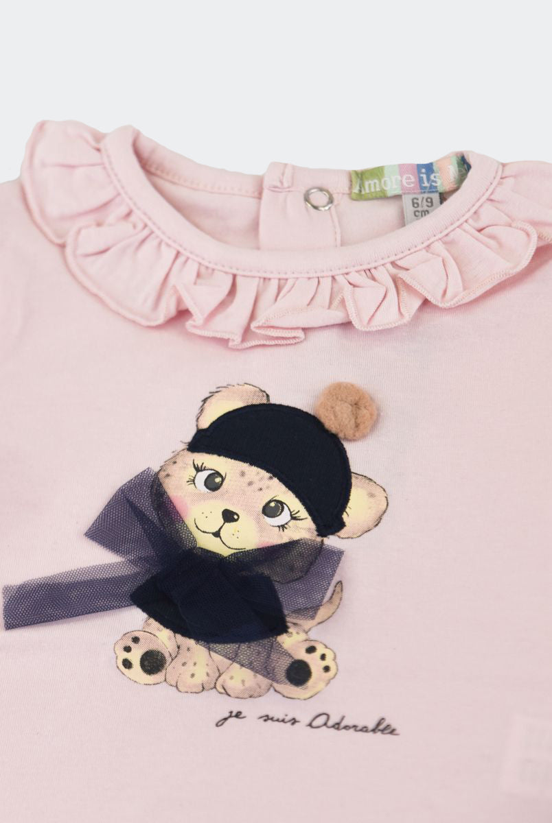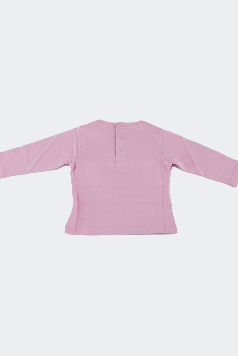 T-shirt con Stampa frontale con fiori applicati. Bottoni a pressione nel retro