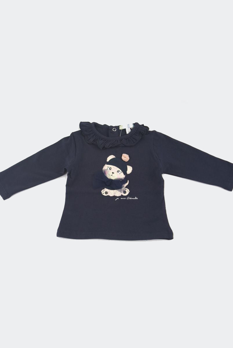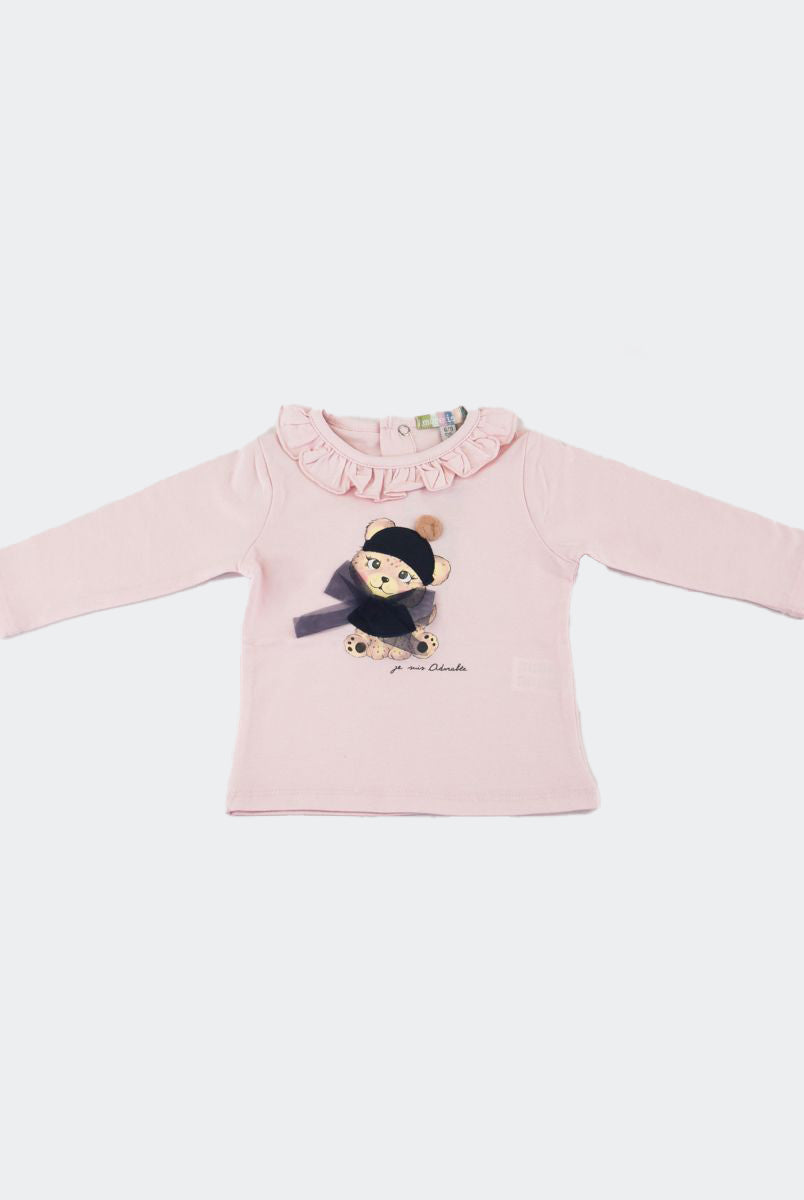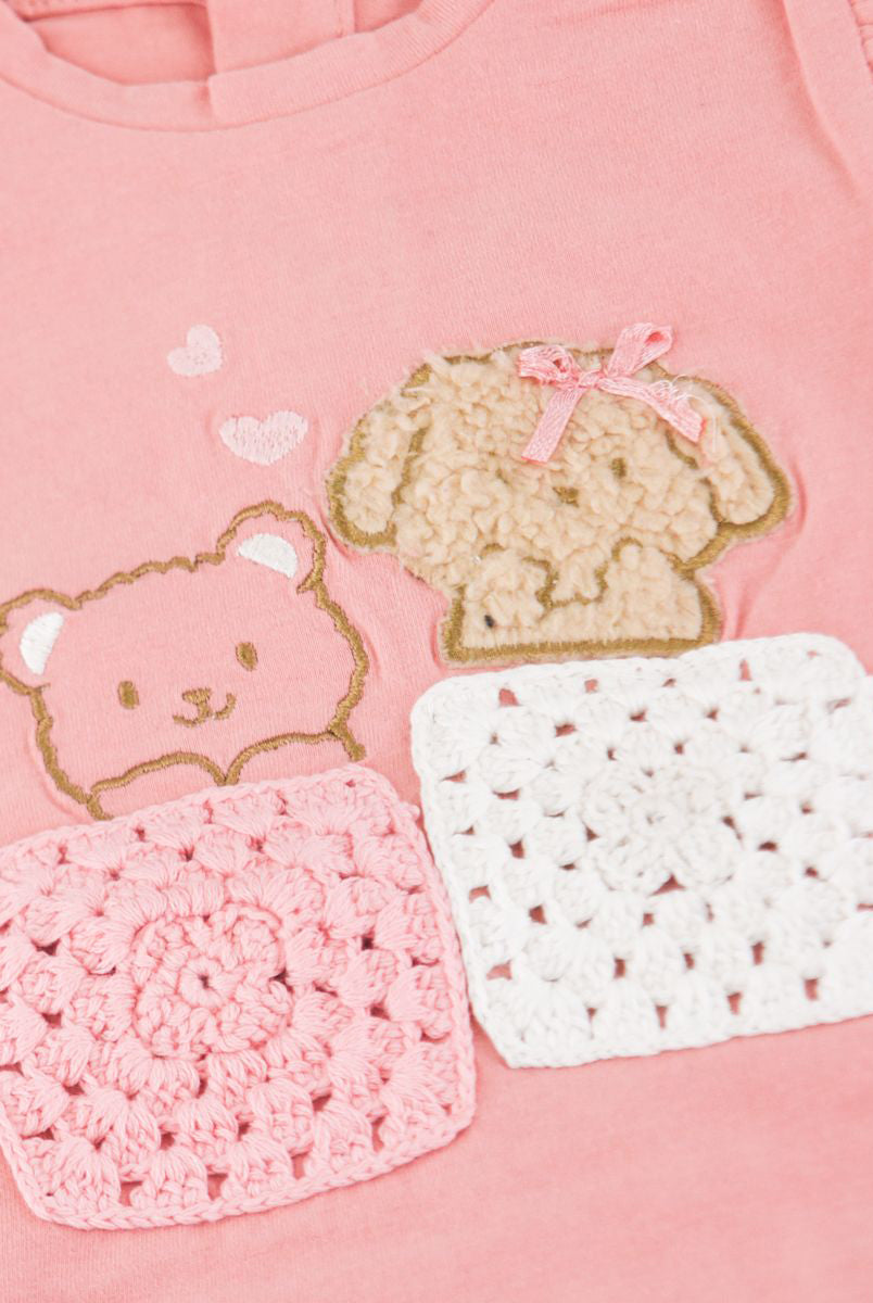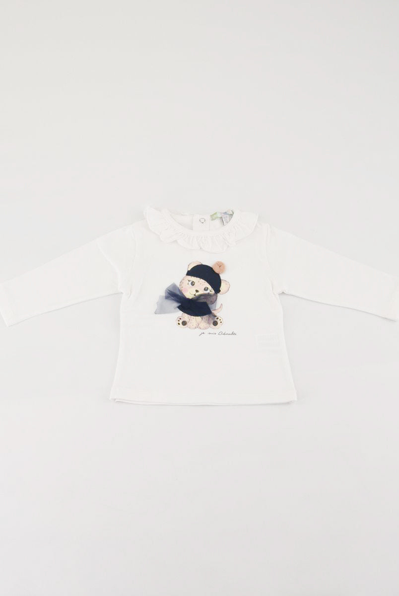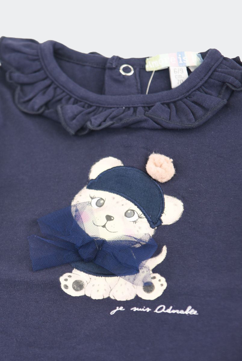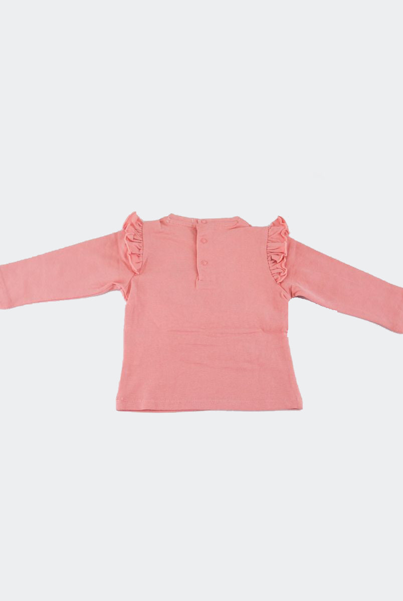 T-shirt con Stampa frontale con fiori applicati. Bottoni a pressione nel retro