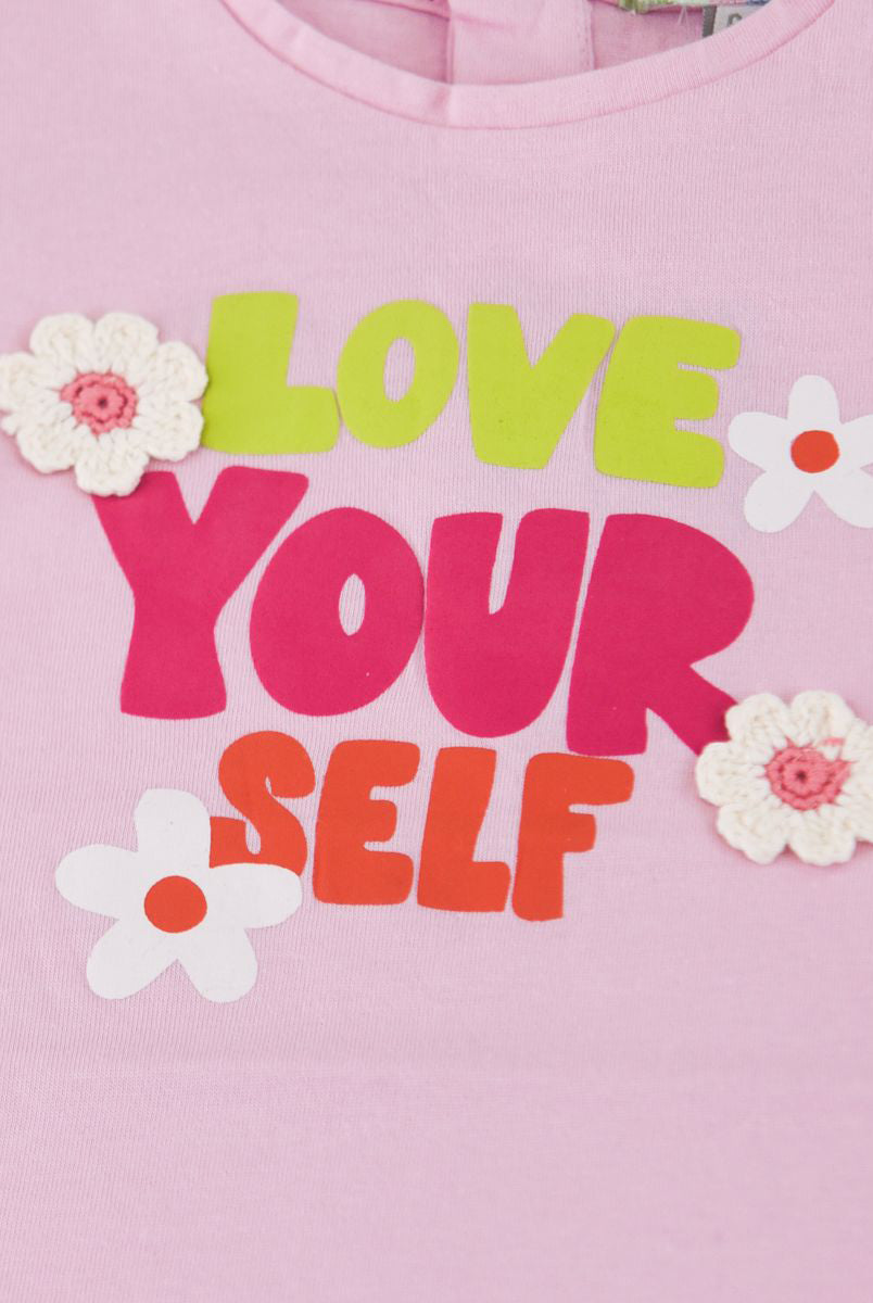 Amore is me T-shirt con Fiori Applicati
