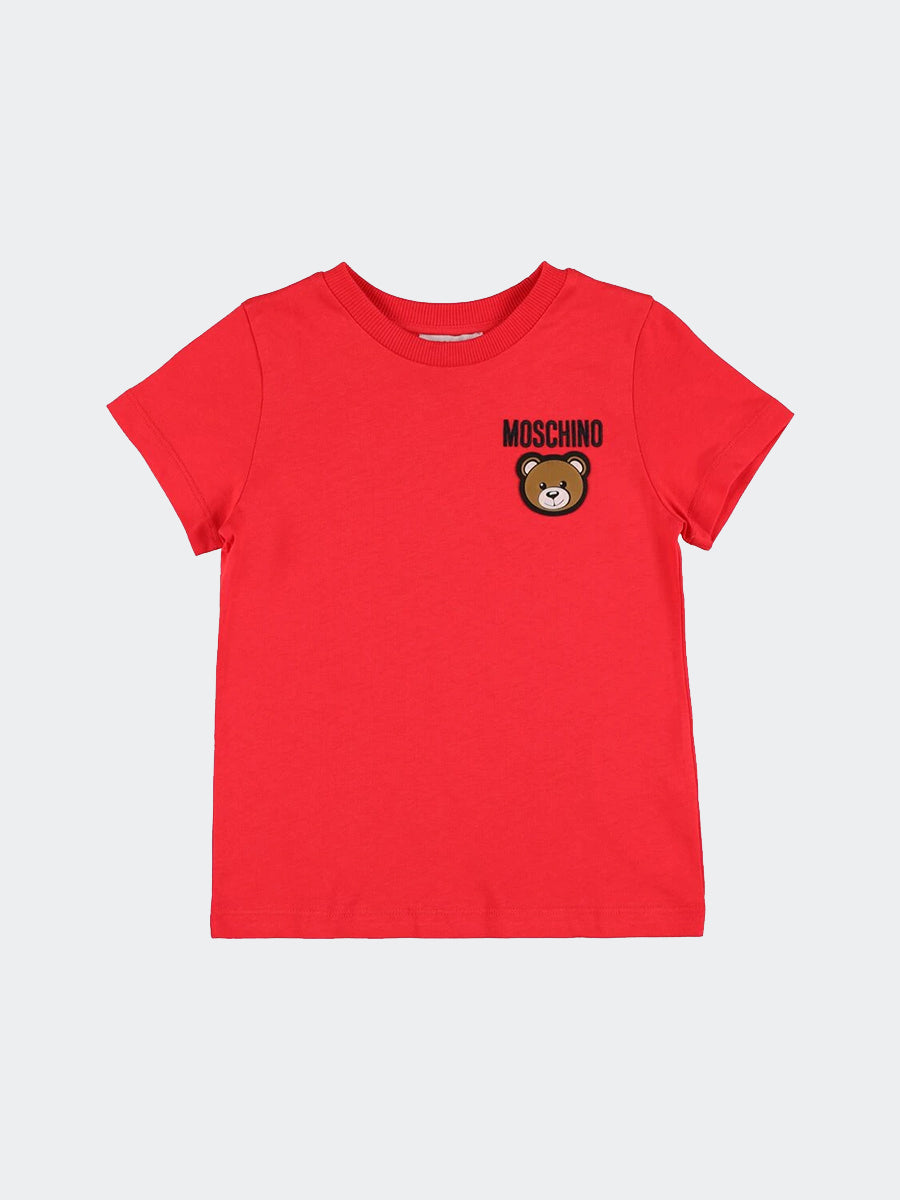 T-shirt a girocollo manica corta . Tinta unita modello stile casual in cotone. Con Patch Logo Teddy ricamato a contrasto sul lato cuore.