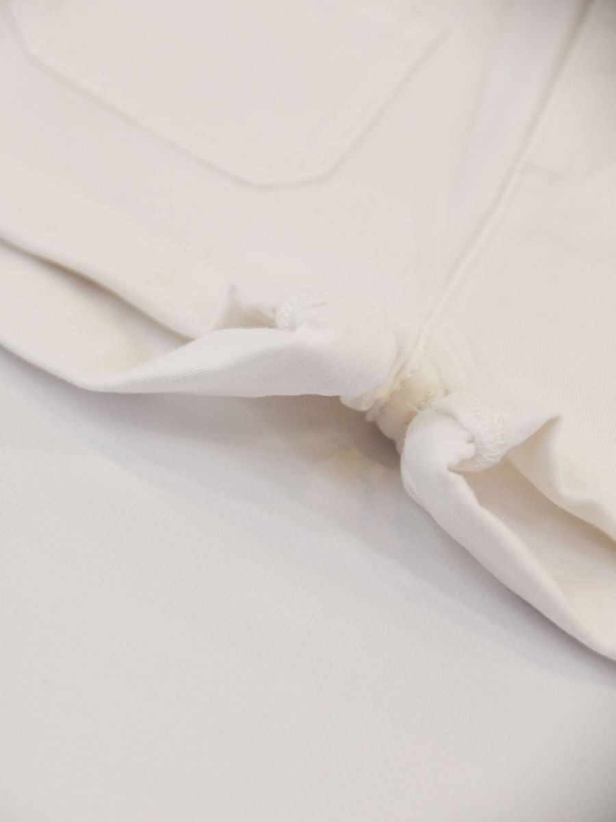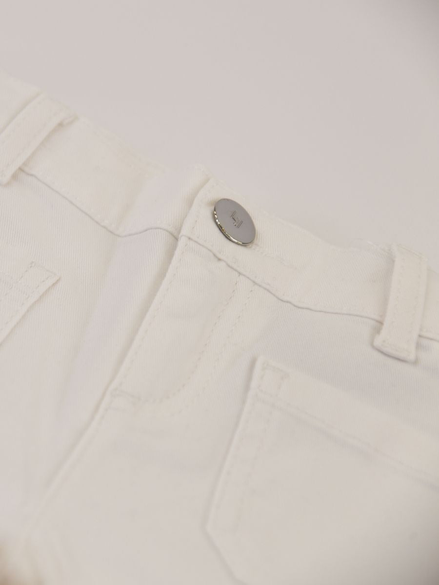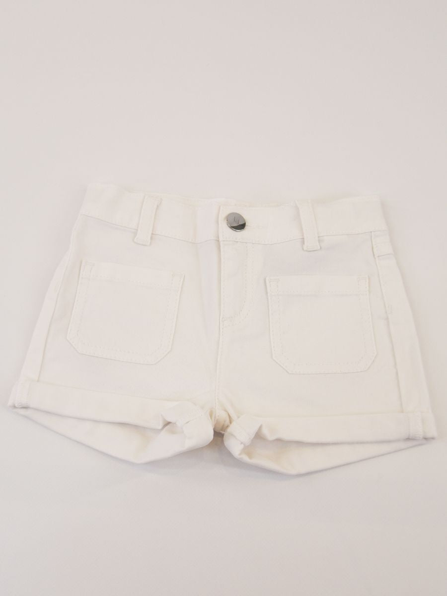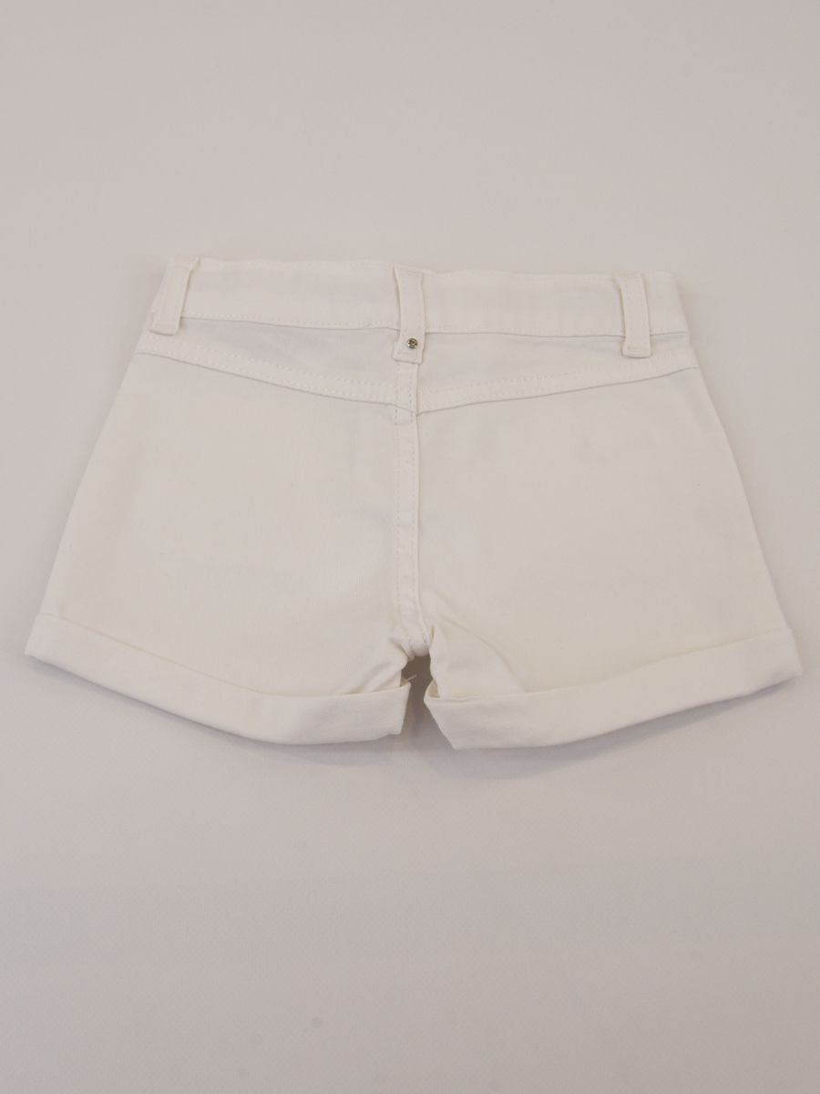 Shorts cinque tasche in gabardina leggera con risvolto. Chiusura a Zip e Bottone con Logo