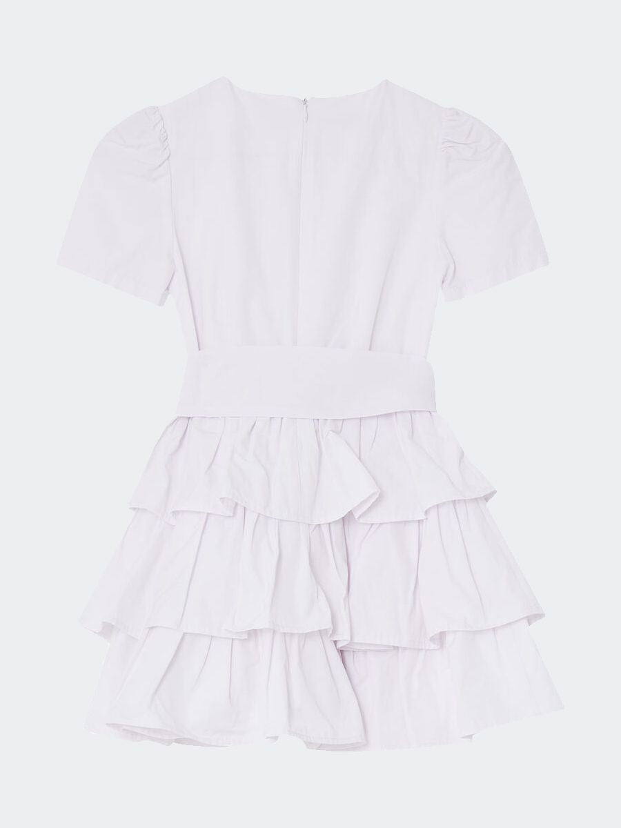Abito tinta unita a manica corta con cintura con regolazione in metallo. Apertura con Zip posteriore