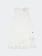 Abito modello smanicato ricamato con chiusura retro con bottoncino.