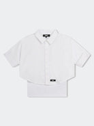 Camicia 2 in 1 top: camicia in poplin di cotone. Bottoni anteriori ed etichetta Logo con marchio con effetto nella parte anteriore inferiore. Venduto con Top canotta con Logo nella parte inferiore della parte posteriore