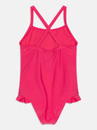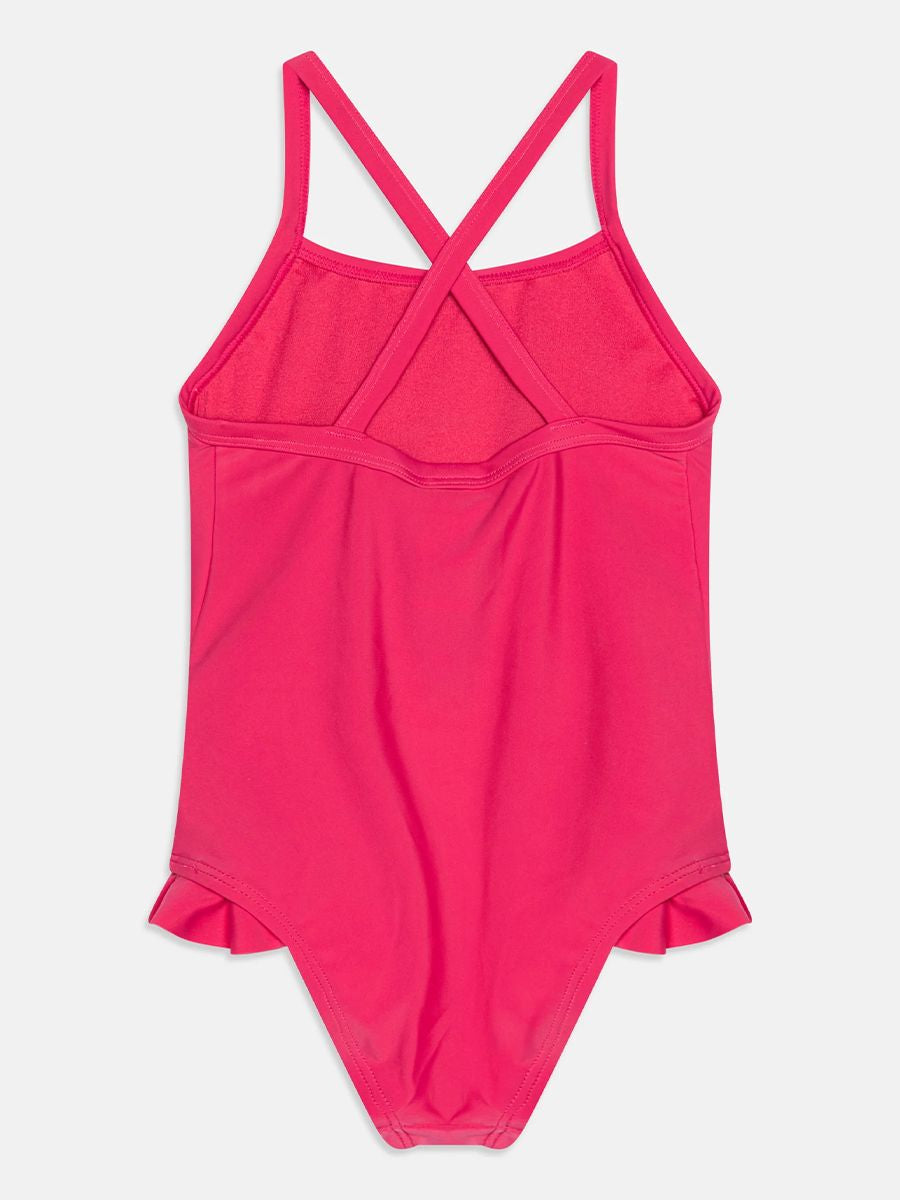 Costume tinta unita Logo Allover con bretelle a incrocio posteriore. Stampa Logo Rainbow sul petto