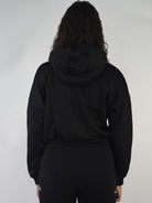 Felpa corta con cappuccio e stampa logo argento in material tecnico