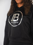 Balmain Felpa Corta con Cappuccio e Stampa Logo