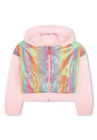 Felpa con cappuccio in french terry di Billieblush è un capo ricercato dal design moderno e brillante arricchito da paillettes che scintillano sul davanti un dettaglio che aggiunge un tocco di eleganza e femminilità. I polsini e il fondo in costina con la chiusura a zip contribuiscono a un fit comodo e versatile perfetto per essere abbinato a diverse occasioni. La cura di questo capo è essenziale per preservarne la bellezza: è fondamentale evitare il lavaggio a secco e l’asciugatura in tamburo rotativo poiché potrebbero danneggiare il tessuto e alterare la forma del capo. Si consiglia di non utilizzare candeggina per evitare lo sbiadimento dei colori di lavare con detersivi delicati che non contengano agenti sbiancanti e di stirare a una temperatura massima di 110°C per mantenere intatte le sue caratteristiche originali.Bimbivip è un partner storico che rappresenta l'eccellenza nel settore offrendo una vasta gamma di prodotti di alta qualità provenienti da marchi prestigiosi come Billieblush. La soddisfazione del cliente è al centro della sua missione garantendo un’esperienza di acquisto impeccabile sia online che nei punti vendita in tutta Europa. Per ogni prodotto sia sul sito web che sulle etichette troverai indicazioni precise su come prenderti cura al meglio dei tuoi articoli per farli durare nel tempo e mantenerli sempre