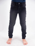 Jeans cinque tasche a cintura regolabile. Chiusura con Bottone e Zip modello Skinny stretch