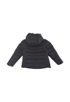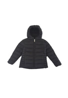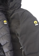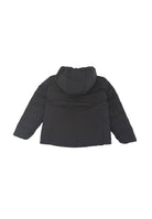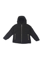 Piumino a cappuccio fisso. Zip totale e bordatura elastica. Tasche laterali con chiusura a Zip e patch gommato del Logosulla manica sinistra. Altro lato con tasche Zip a filo. Tessuto tecnico idrorepellente