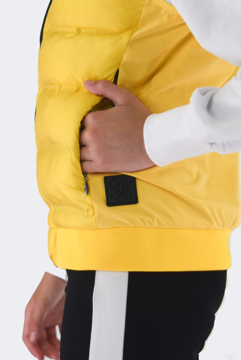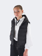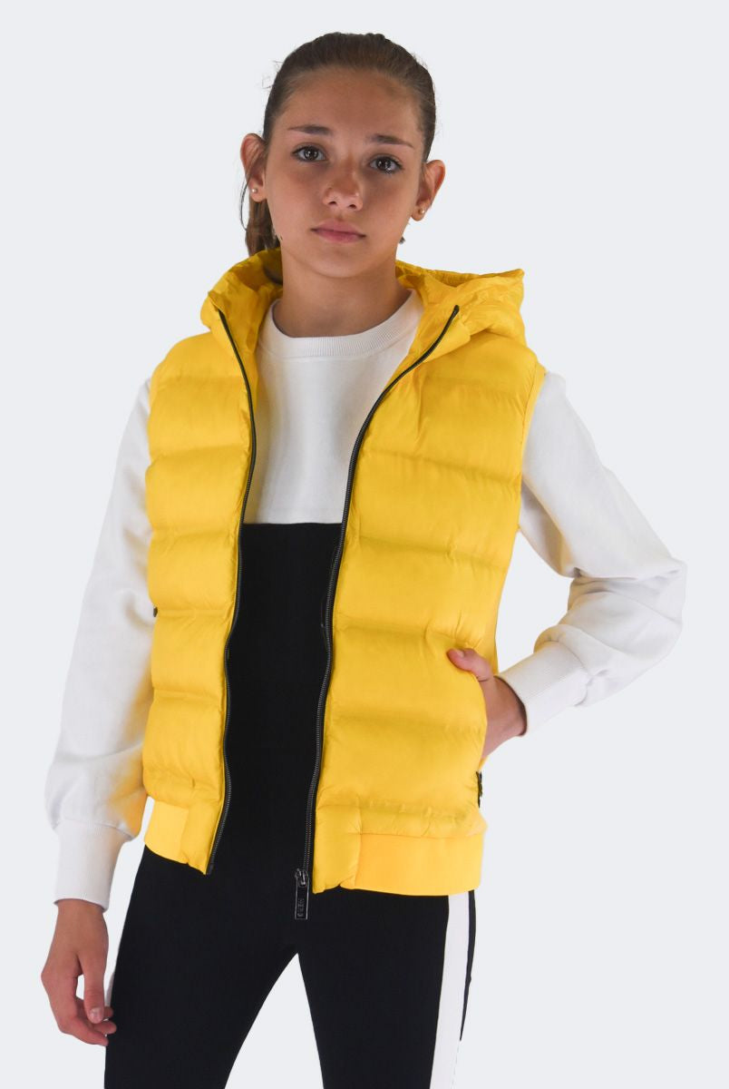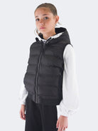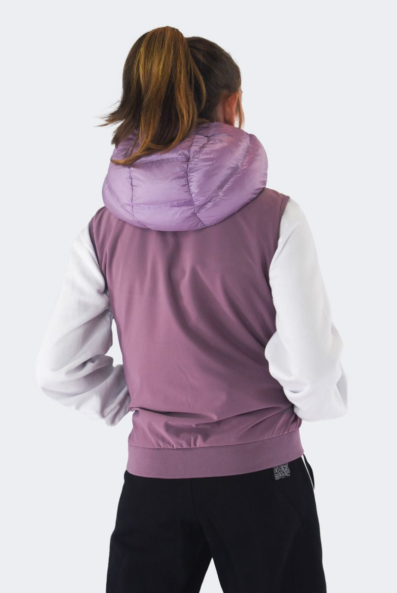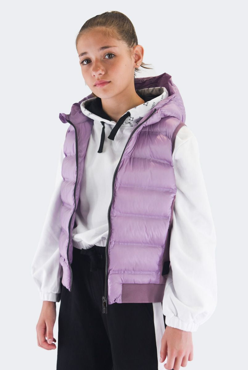 Smanicato tinta unita con collo a cappuccio. Monopetto senza maniche. interno in Ecopiuma. multitasche con zip. Modello pratico e elasticizzato. Fondo e polsi con costina elastica e patch Logo sul fondo lato sinistro