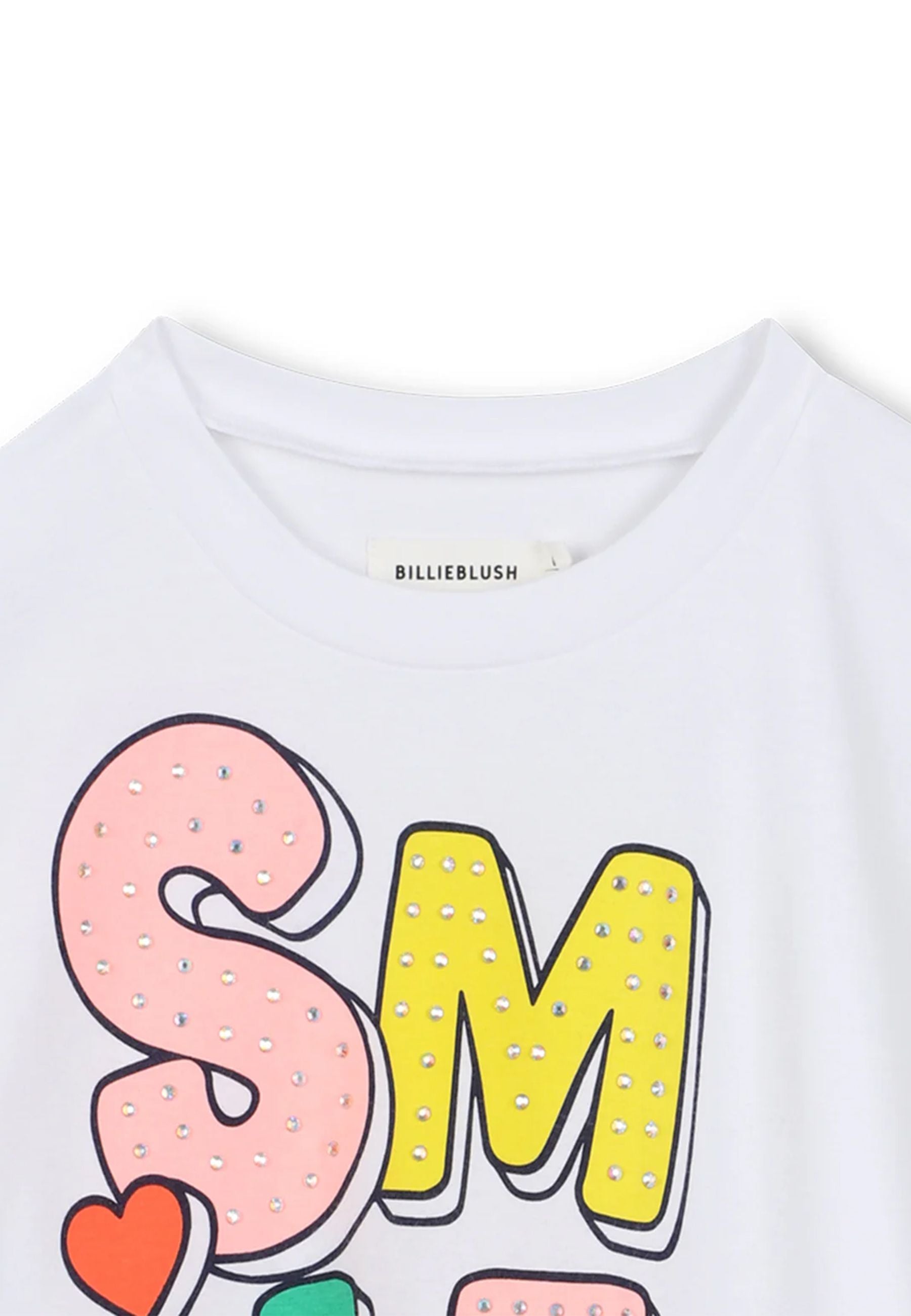 T-shirt T-shirt in jersey 100% cotone. maniche lunghe. scollo tondo. illustrazione frontale con piccole borchie. etichetta. Vestibilità comoda.