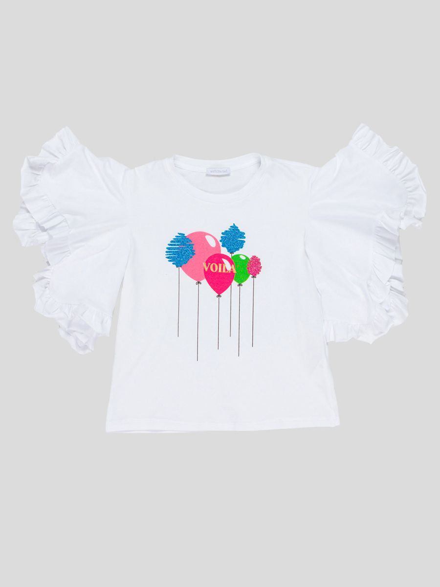 T-shirt girocollo tinta unita con maniche Voila e stampa frontale palloncini
