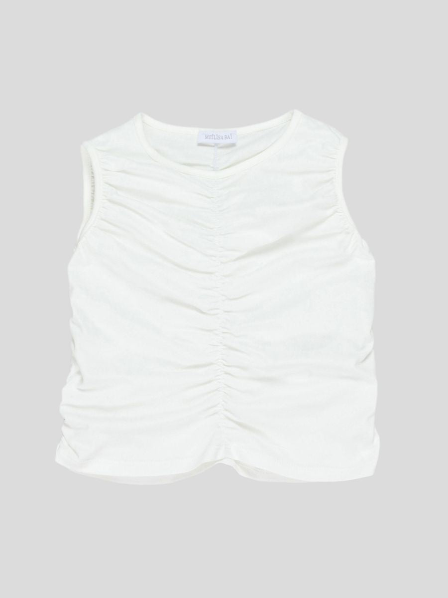 Top girocollo elasticizzata con interno in cotone con bordo in tinta