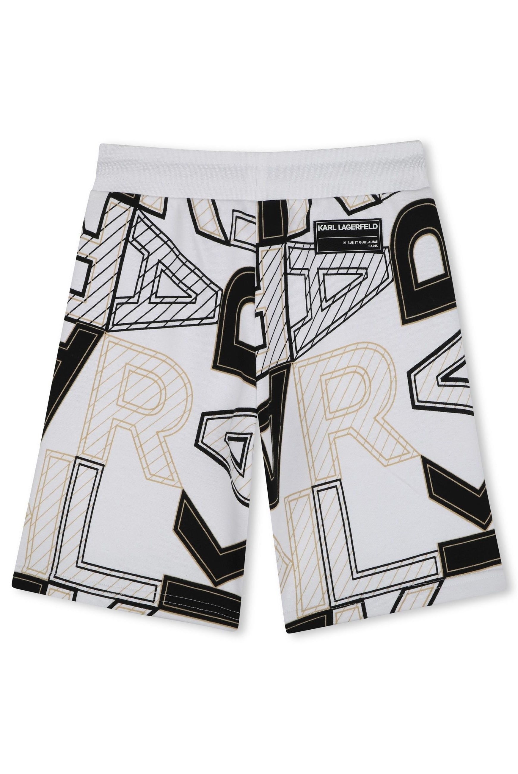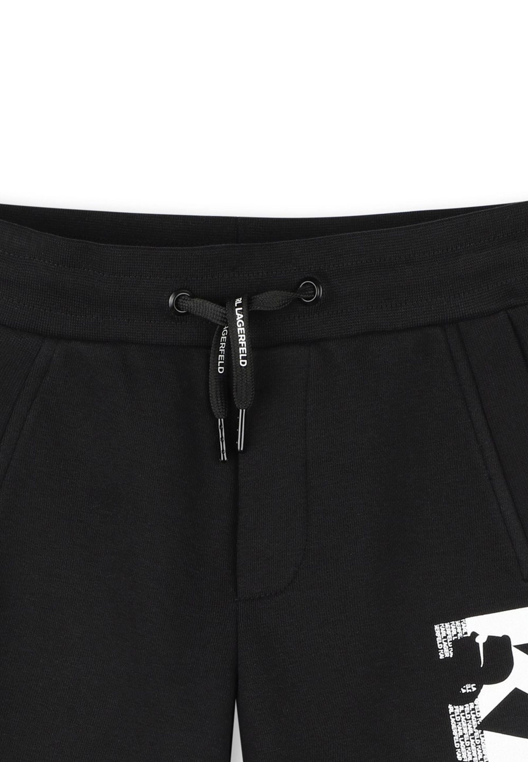 Bermuda Bermuda in cotone 87% da agricoltura biologica e 13% poliestere. Vita elasticizzata con lacci logati. Tasche laterali una tasca posteriore. Illustrazione del marchio KARL LAGERFELD sul davanti ed etichetta del marchio KARL LAGERFELD sul retro.Lavare in lavatrice in acqua fredda - Non candeggiare - Non asciugare in asciugatrice - Stirare a bassa temperatura - Non lavare a secco