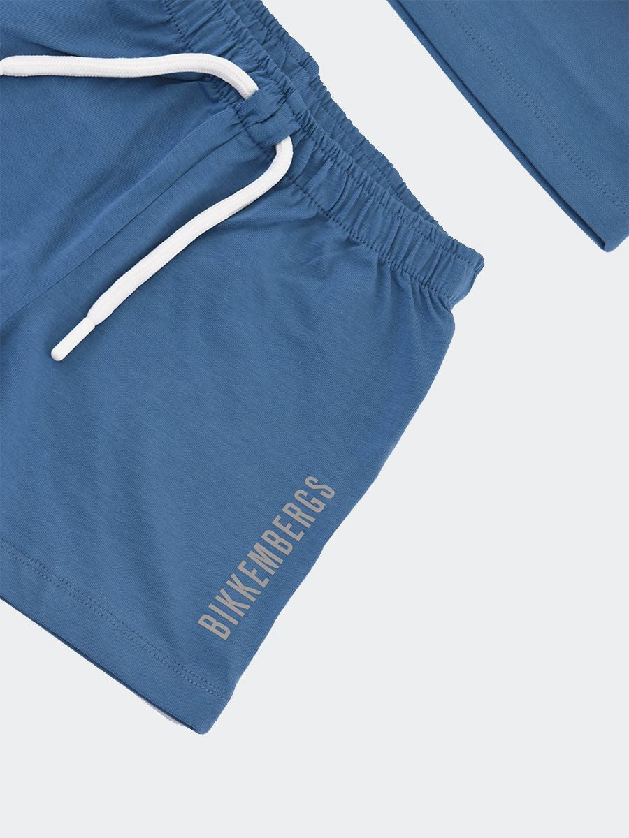 Completo composto da smanicato con Stampa frontale e Bermuda tinta unita con cordino di regolazione su girovita tasche a filo