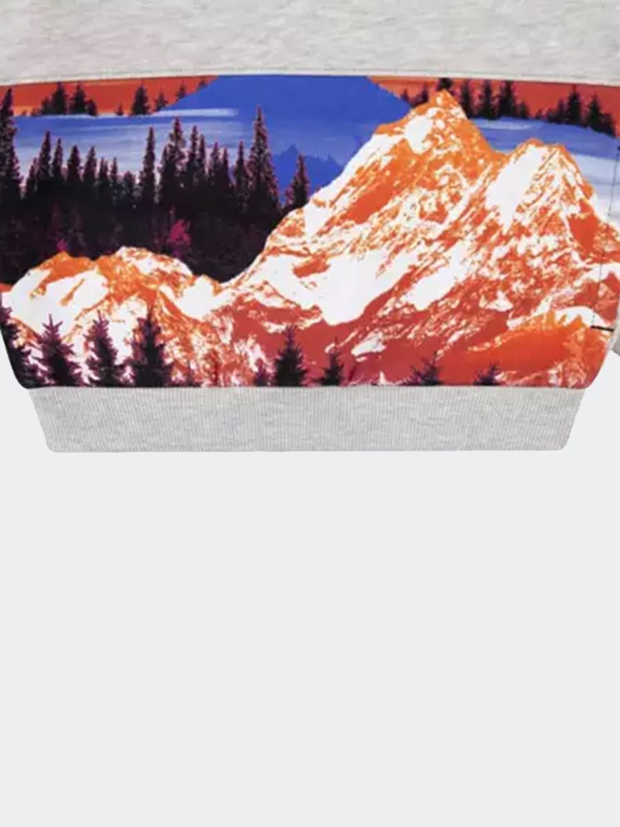Felpa chiusa con Cappuccio. Ricamo lato cuore con stampa panoramica Mountain. Tasche laterali e polsi e fondo a costina