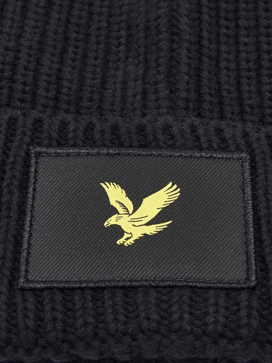 Cappello a zuccotto con risvolto in maglia a coste larghe con patch ricamo del Logo