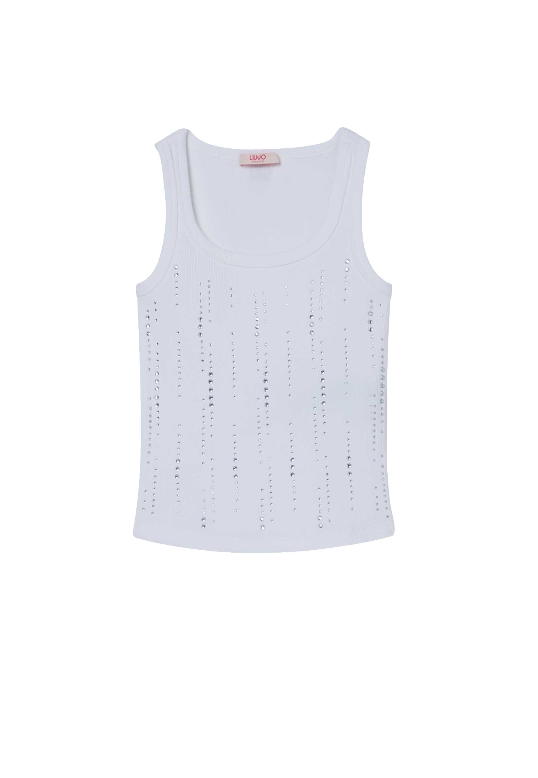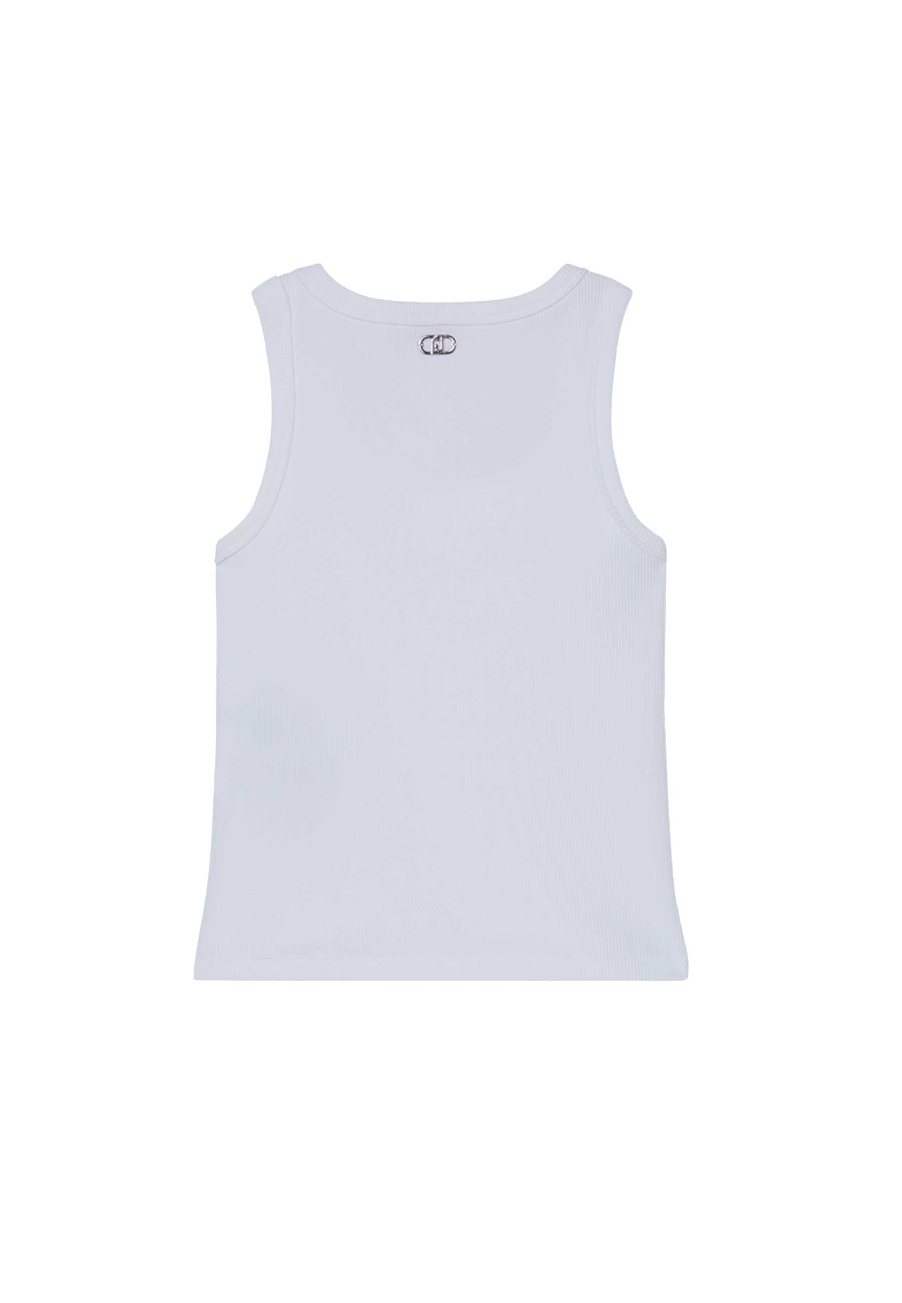 Canotta bianca top costinata con Logo Metallico