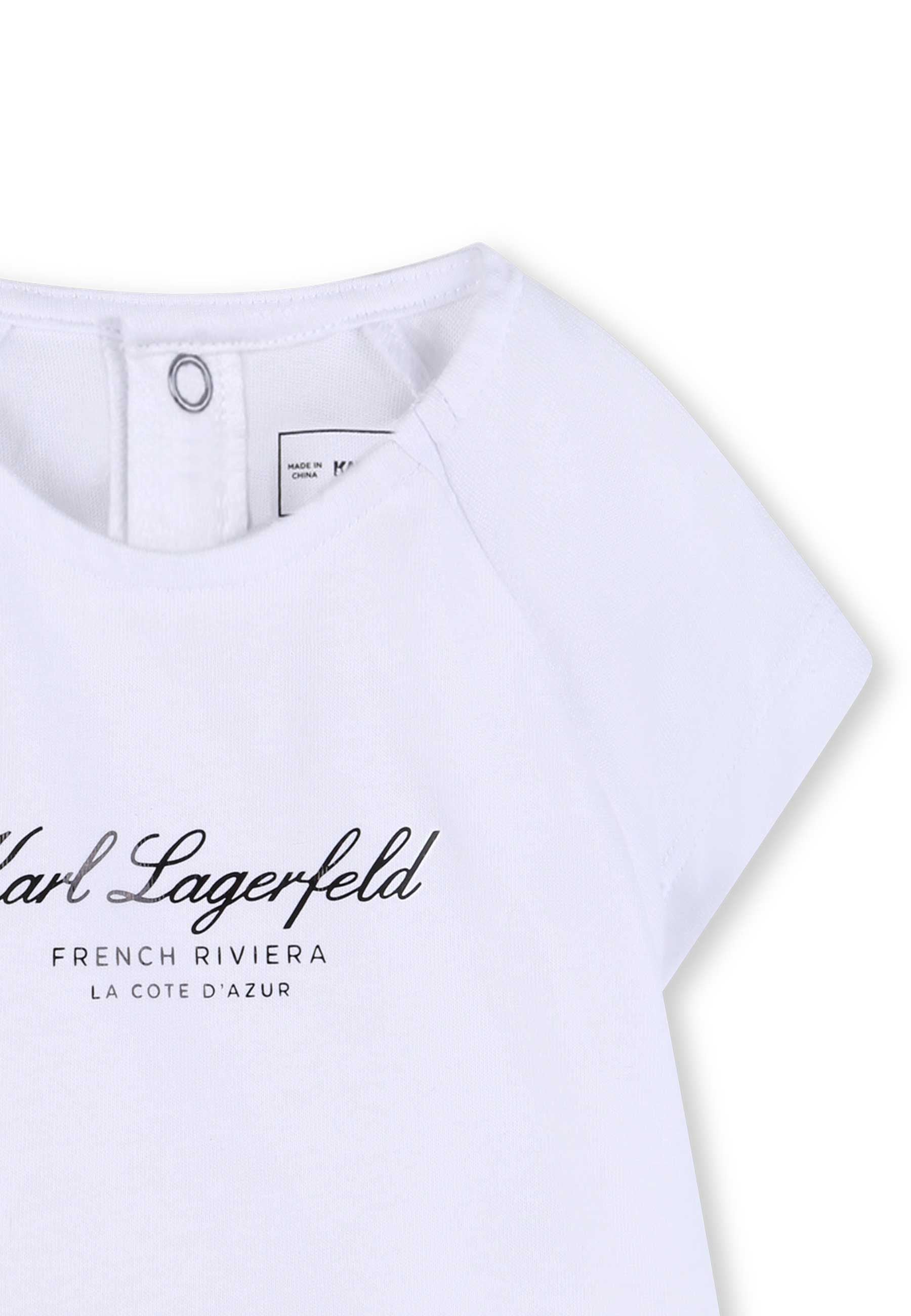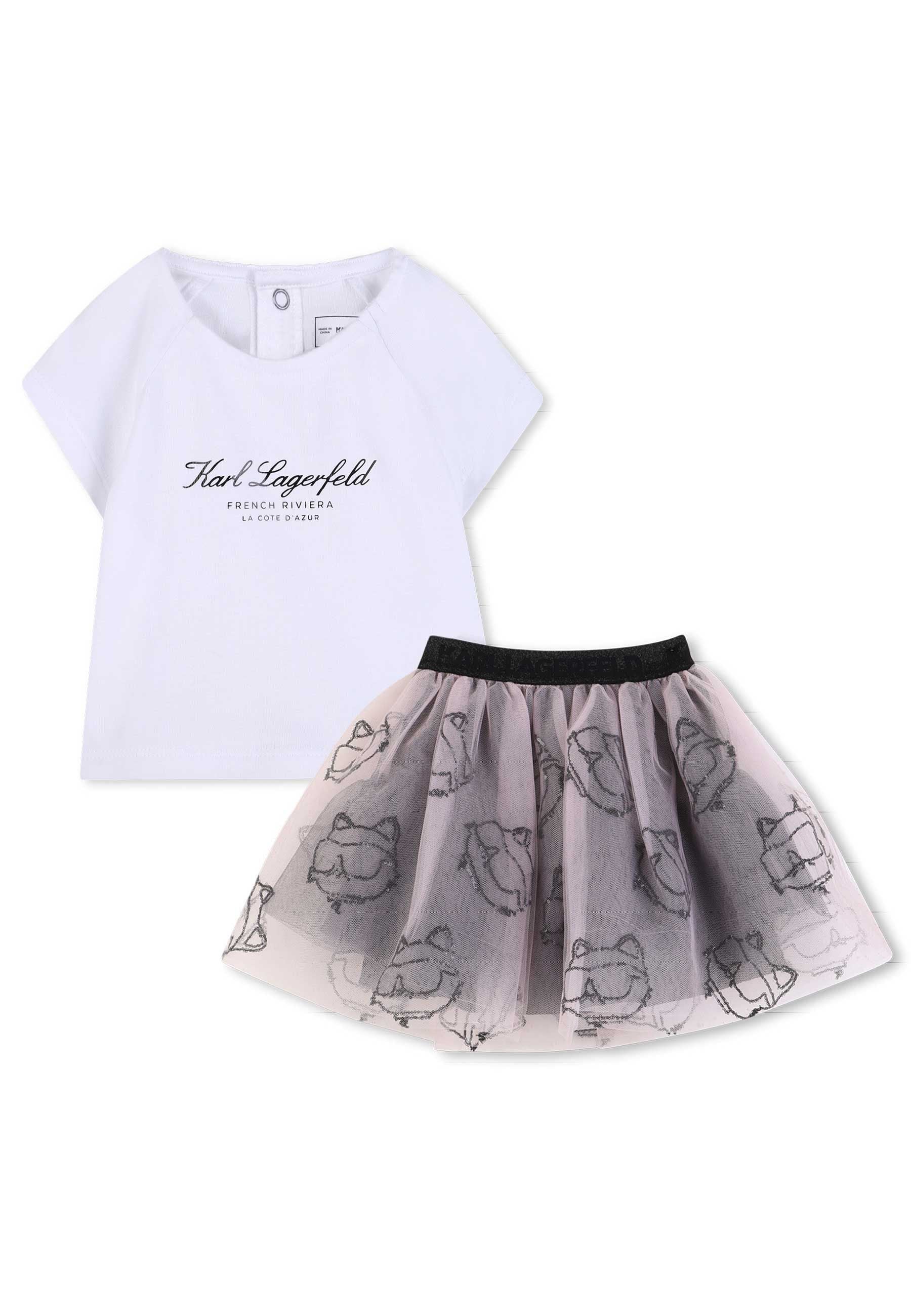 Completo Sportivo Completo t shirt e gonna. T shirt in jersey 100% cotone proveniente da agricoltura biologica. Chiusura con bottoni a pressione sul retro. Stampa effetto metallizzato "FRENCH RIVIERA LA COTE D'AZUR" sul davanti. Gonna in rete 100% poliestere riciclato con fodera in viscosa ecosostenibile. Ricamo Choupette all over in paillettes. Vita con elastico logato KARL LAGERFELD. Istruzioni per la cura Lavaggio lana Non candeggiare Non asciugare in asciugatrice Stirare a bassa temperatura Non lavare a secco Prodotto esclusivo distribuito da Bimbivip partner storico affidabile e autorevole nel panorama europeo ecommerce e retail punto di riferimento per le famiglie che cercano qualità autenticità e marchi prestigiosi Bimbivip assicura esperienza di acquisto sicura trasparente e gratificante con attenzione al cliente cura nella selezione e garanzia di originalità per uno shopping sereno e di valore