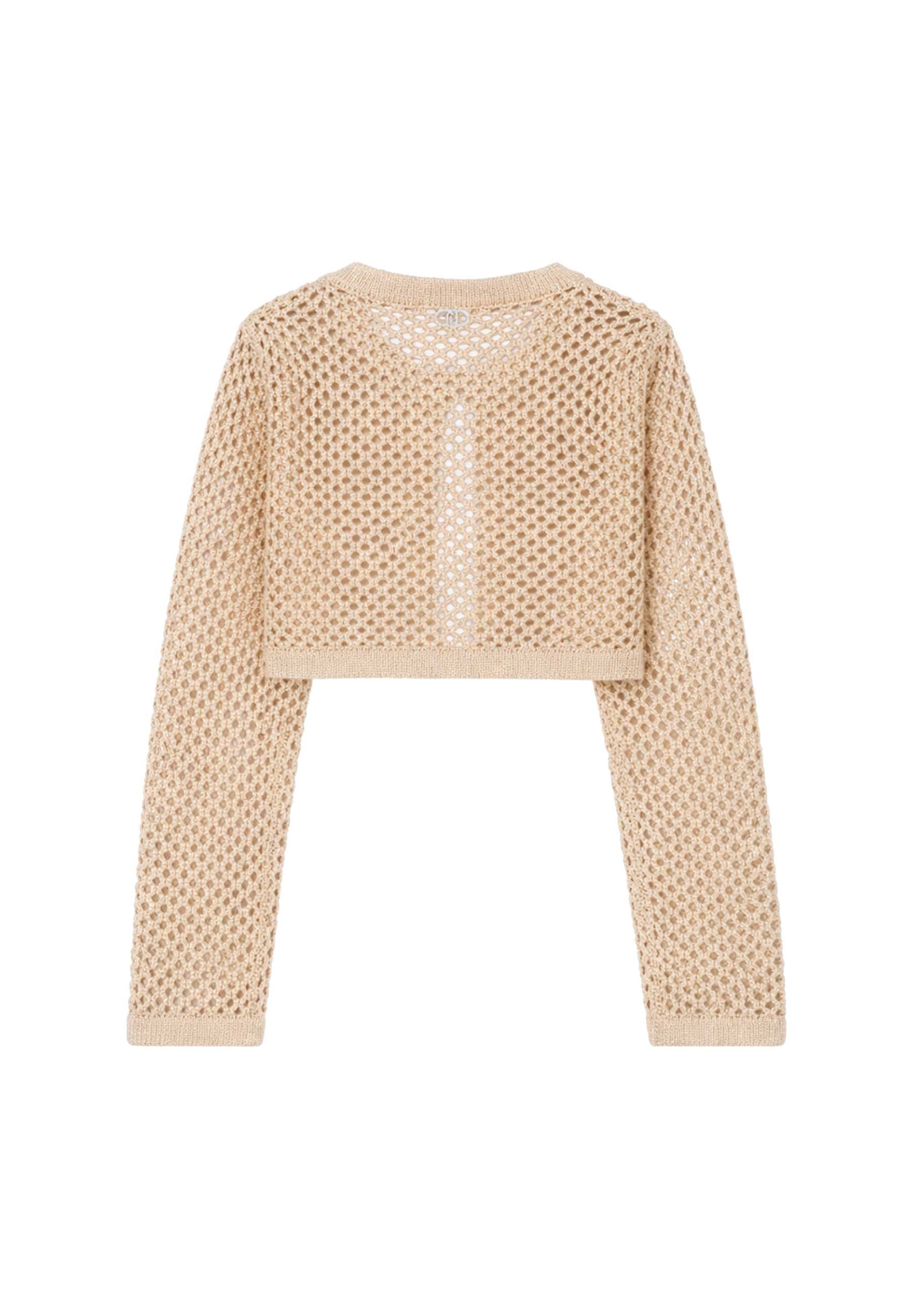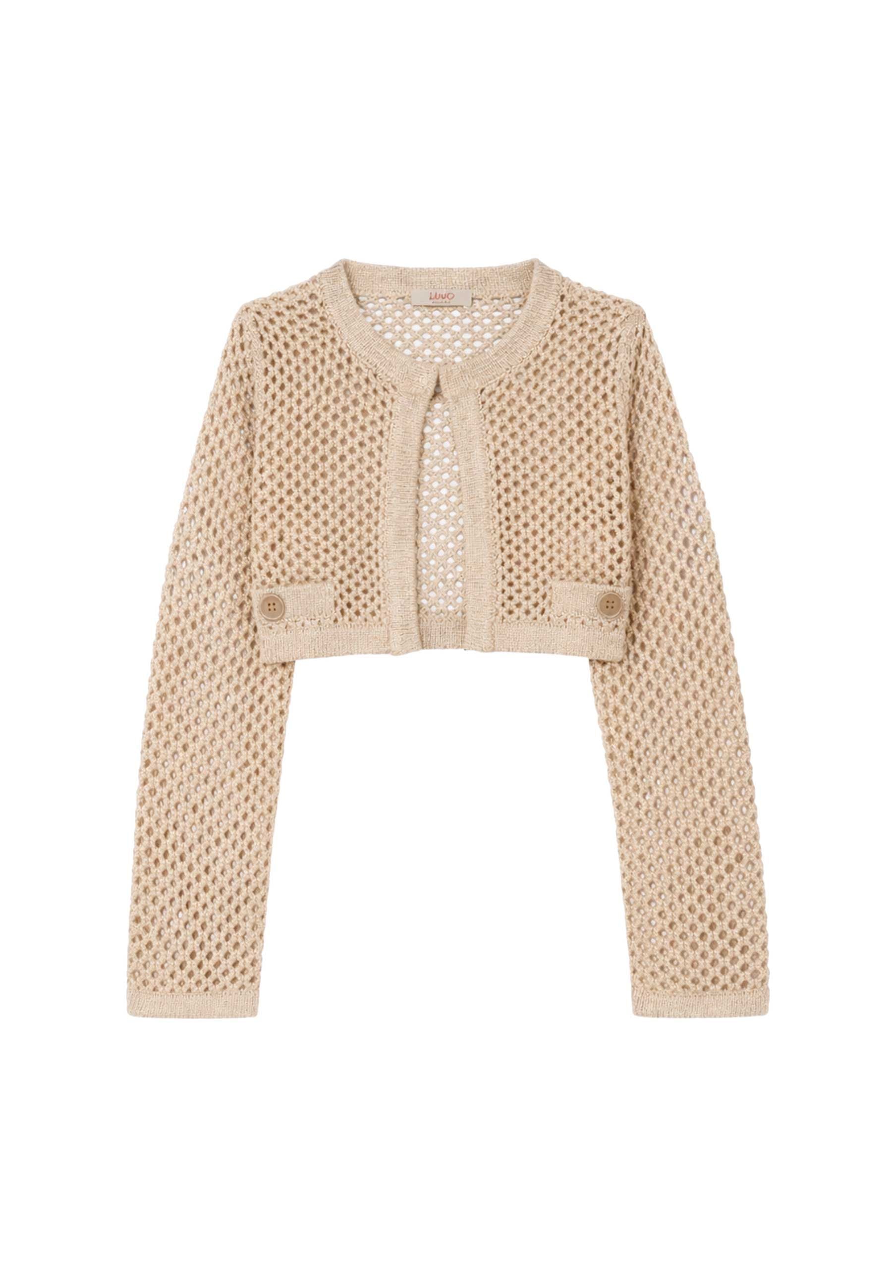 Maglia Cardigan Liu Jo in maglia raffinata e femminile con lavorazione traforata effetto rete che dona leggerezza e stile luminosi interventi in lurex valorizzano il design con eleganza moderna mentre la chiusura con gancetto metallico assicura praticità e vestibilità curata Prodotto esclusivo distribuito da Bimbivip partner storico affidabile e autorevole nel panorama europeo ecommerce e retail punto di riferimento per le famiglie che cercano qualità autenticità e marchi prestigiosi Con Liu Jo Bimbivip garantisce esperienza di acquisto sicura trasparente e gratificante con attenzione al cliente selezione rigorosa e garanzia di originalità per uno shopping sereno e di valore
