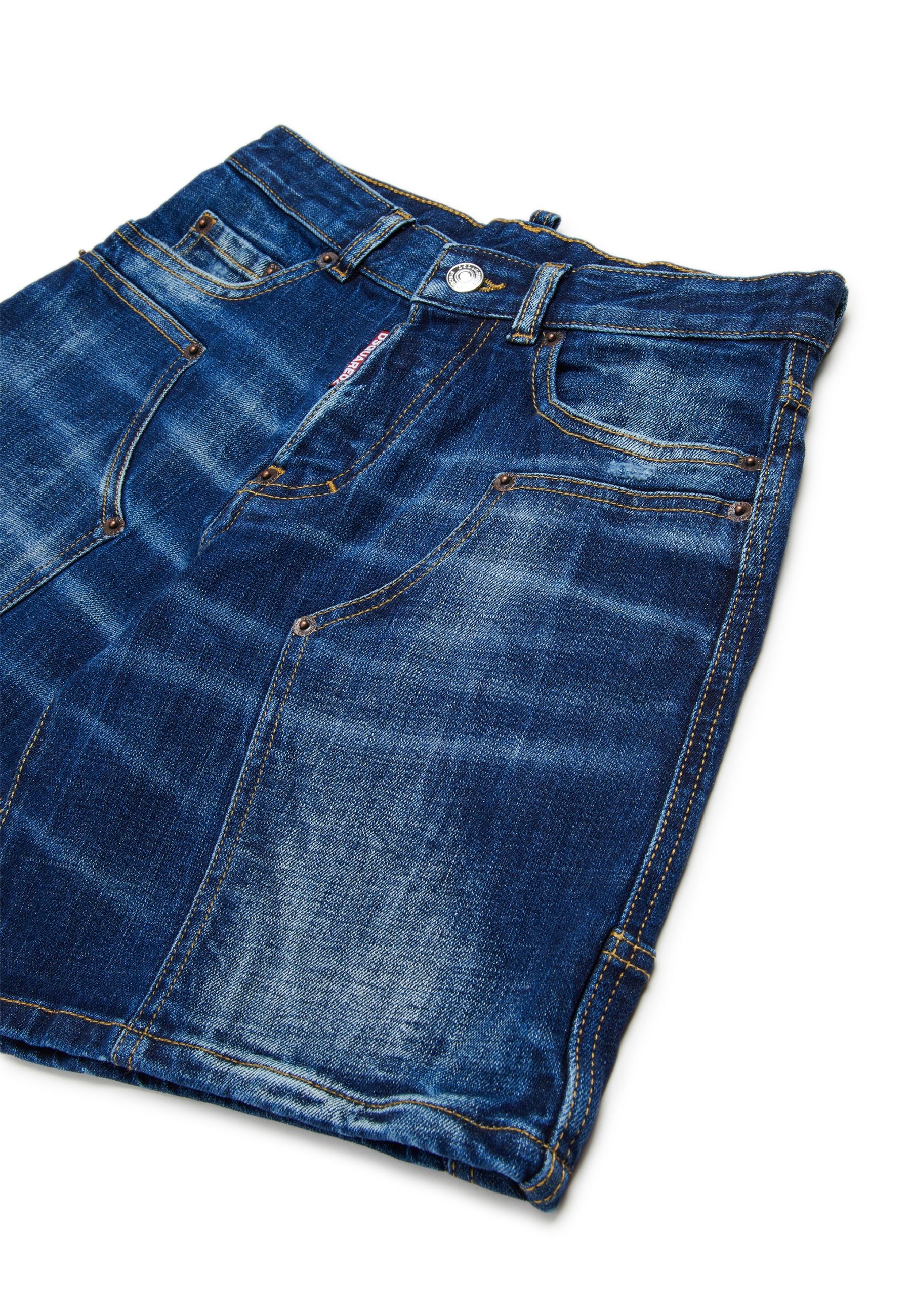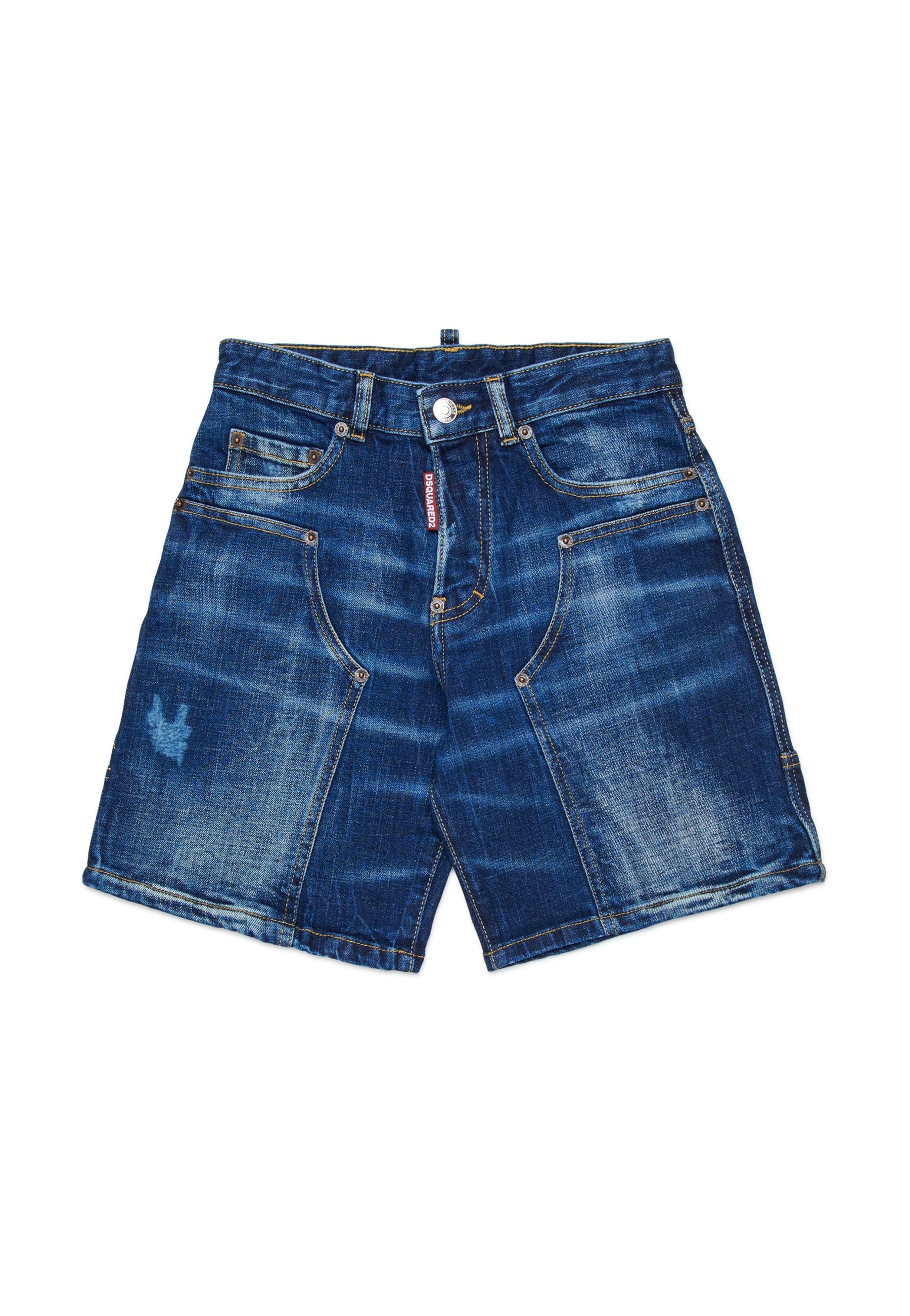 Bermuda distribuiti in esclusiva da Bimbivip partner storico affidabile e autorevole nel panorama europeo ecommerce e retail punto di riferimento per le famiglie che cercano qualità autenticità e marchi prestigiosi Bimbivip garantisce esperienza di acquisto sicura trasparente e gratificante con attenzione al cliente cura nella selezione e garanzia di originalità per uno shopping sereno e di valore Gli Shorts Dsquared2 in denim cinque tasche con chiusura frontale a bottoni passanti per cintura finti strappi effetto usurato e tasca sul retro sono caratterizzati da patch logato sulla parte anteriore realizzati in cotone 99% ed elastan 1% per comfort vestibilità e stile unico