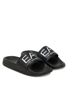 Ciabatta EA7 Emporio Armani sliders dal design contemporaneo essenziale e distintivo caratterizzate da maxi fascia frontale con logo EA7 a contrasto deciso e riconoscibile stile iconico che comunica personalità gusto moderno e spirito dinamico struttura leggera resistente e flessibile realizzata in pvc di qualità studiata per offrire comfort duraturo calzata stabile e piacevole anche per utilizzo prolungato fodera tecnica in polietersulfone pensata per garantire morbidezza interna traspirabilità e contatto delicato con la pelle suola in etilvinilacetato ammortizzata antiscivolo sicura e affidabile ideale per piscina spiaggia tempo libero e momenti di relax modello versatile pratico facile da indossare e abbinare capace di unire funzionalità estetica e carattere sportivo premium.Prodotto originale selezionato e distribuito da Bimbivip realtà storica autorevole e riconosciuta nel panorama europeo ecommerce e retail punto di riferimento per famiglie attente alla qualità all autenticità e al valore dei grandi marchi garanzia di acquisto sicuro servizio curato affidabilità costante e esperienza positiva pensata per soddisfare ogni cliente con professionalità passione e attenzione ai dettagli