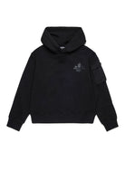 Felpa nera in cotone con cappuccio