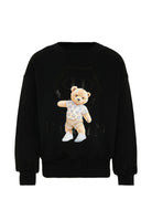 Felpa girocollo Nera con Orso e logo scintillante