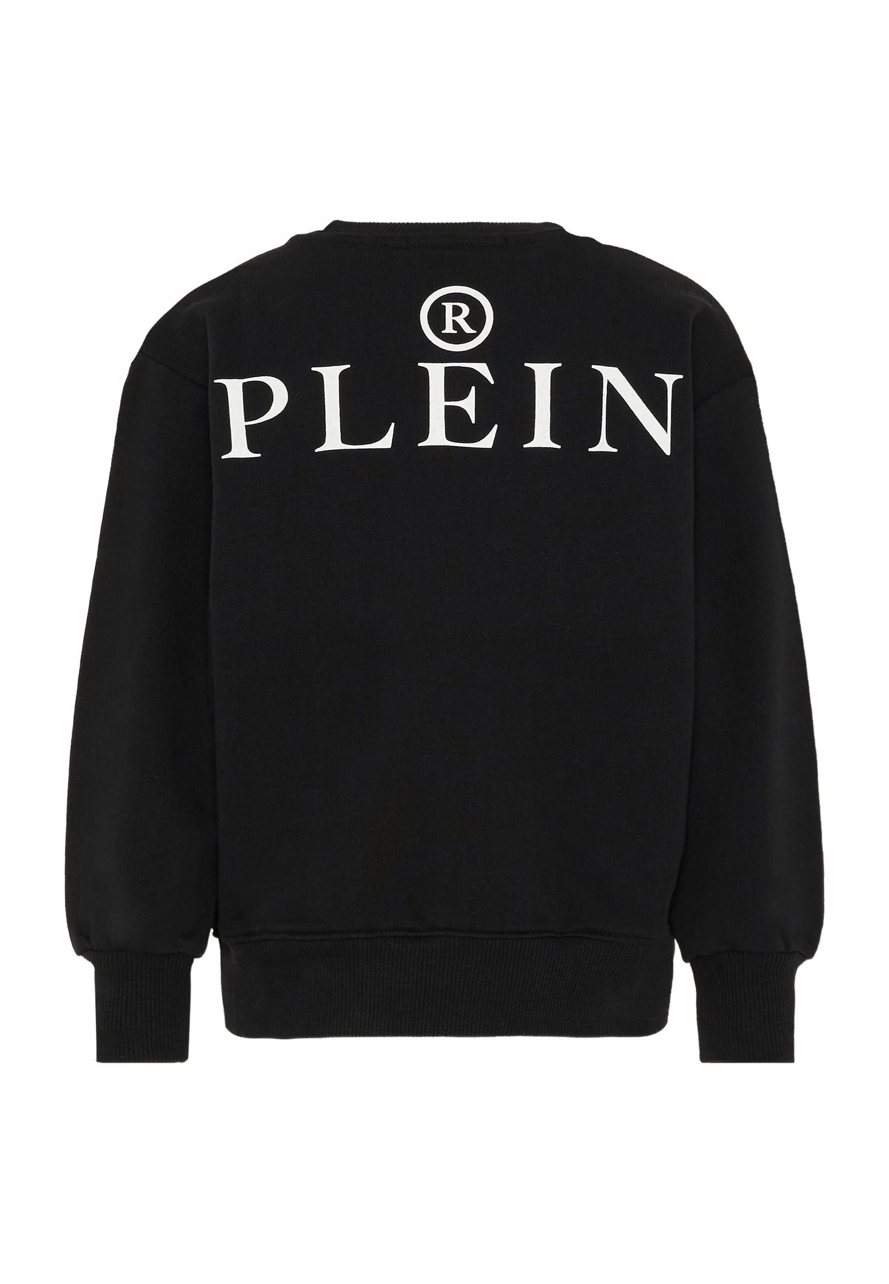 Felpa girocollo Iconic Plein firmata Philipp Plein realizzata in cotone puro di alta qualità con tessuto jersey morbido resistente e confortevole colore nero e bianco elegante e moderno design distintivo con stampa logo frontale iconica e riconoscibile vestibilità pratica e versatile con maniche lunghe orlo dritto e finiture a coste su polsini e bordo inferiore per una tenuta stabile e ordinata capo raffinato funzionale e duraturo ideale per un uso quotidiano dinamico e curato.Prodotto originale distribuito in esclusiva da Bimbivip partner storico affidabile e autorevole nel panorama europeo e-commerce e retail realtà consolidata e riconosciuta dalle famiglie per qualità autenticità sicurezza e selezione di marchi prestigiosi garanzia di un acquisto protetto e di valore per un’esperienza soddisfacente e serena