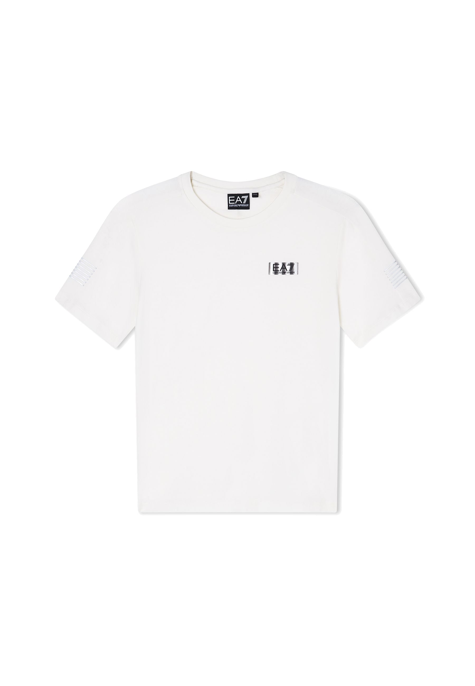 T-shirt senza tempo di EA7 Emporio Armani pensata per i più piccoli una T-shirt realizzata in maglia fine elasticizzata e cotone traspirante per comfort e libertà di movimento Il taglio dritto il classico girocollo rotondo e le maniche corte assicurano praticità e stile mentre il logo del prestigioso marchio impreziosisce la parte anteriore Un prodotto esclusivo distribuito da Bimbivip partner storico affidabile e riconosciuto nel panorama europeo dell’e-commerce e retail da anni punto di riferimento per famiglie attente alla qualità originalità e garanzia dei marchi prestigiosi per un’esperienza d’acquisto sicura soddisfacente e appagante