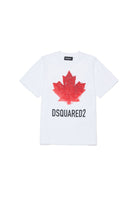 T-shirt Bianca in cotone puro con maniche corte e scollo a girocollo a coste esclusiva e autentica distribuita da Bimbivip partner storico affidabile e autorevole nel panorama europeo ecommerce e retail punto di riferimento per le famiglie che cercano qualità autenticità e marchi prestigiosi Bimbivip garantisce esperienza di acquisto sicura trasparente e gratificante con attenzione al cliente cura nella selezione e originalità per uno shopping sereno e di valore La maglia si distingue per il logo iconico e la foglia di acero rossa sul davanti design elegante sofisticato e contemporaneo comfort superiore e tessuto traspirante 100 percento cotone ideale per uno stile raffinato e quotidiano