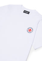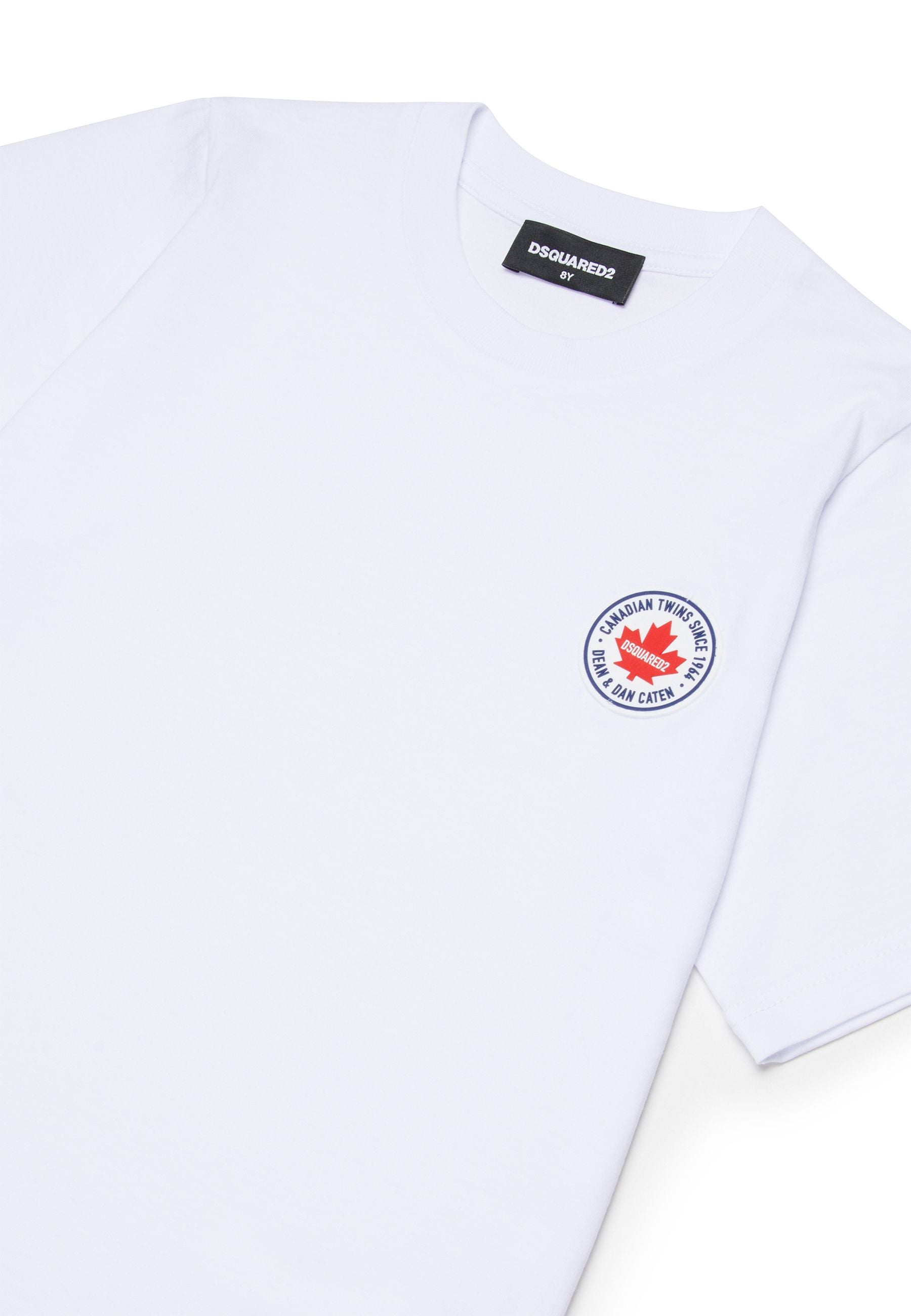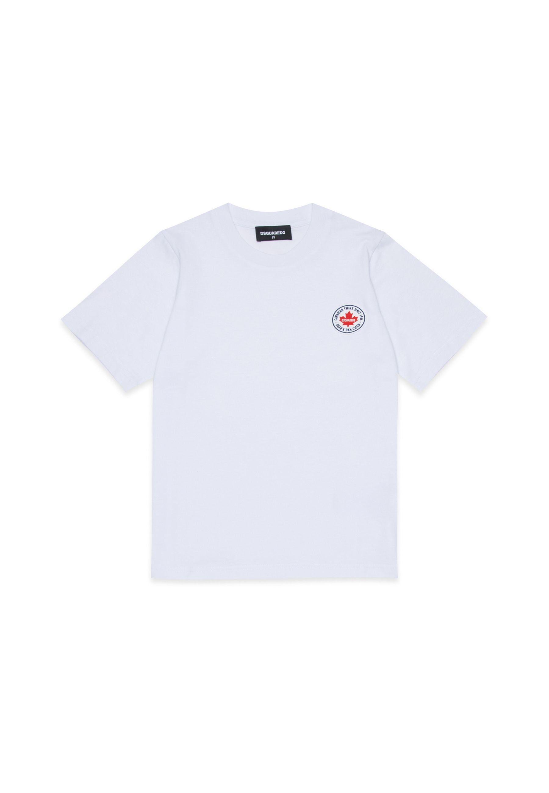 T-shirt Dsquared2 bianca realizzata in cotone morbido e resistente con maniche corte e girocollo a costine raffinato elegante e contemporaneo perfetta per uno stile distintivo e curato Dettaglio patch logato in gomma sul petto che conferisce carattere autenticità e prestigio Prodotto distribuito da Bimbivip partner storico affidabile e autorevole nel panorama europeo ecommerce e retail punto di riferimento per le famiglie che cercano qualità autenticità e marchi prestigiosi Bimbivip garantisce esperienza di acquisto sicura trasparente e gratificante attenzione al cliente cura nella selezione e garanzia di originalità per uno shopping sereno e di valore
