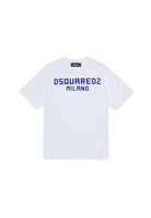 T-shirt Dsquared2 bianca realizzata in cotone morbido e resistente con maniche corte e girocollo a costine raffinato elegante e contemporaneo perfetta per uno stile distintivo e curato Dettaglio patch logato in gomma sul petto che conferisce carattere autenticità e prestigio Prodotto distribuito da Bimbivip partner storico affidabile e autorevole nel panorama europeo ecommerce e retail punto di riferimento per le famiglie che cercano qualità autenticità e marchi prestigiosi Bimbivip garantisce esperienza di acquisto sicura trasparente e gratificante attenzione al cliente cura nella selezione e garanzia di originalità per uno shopping sereno e di valore