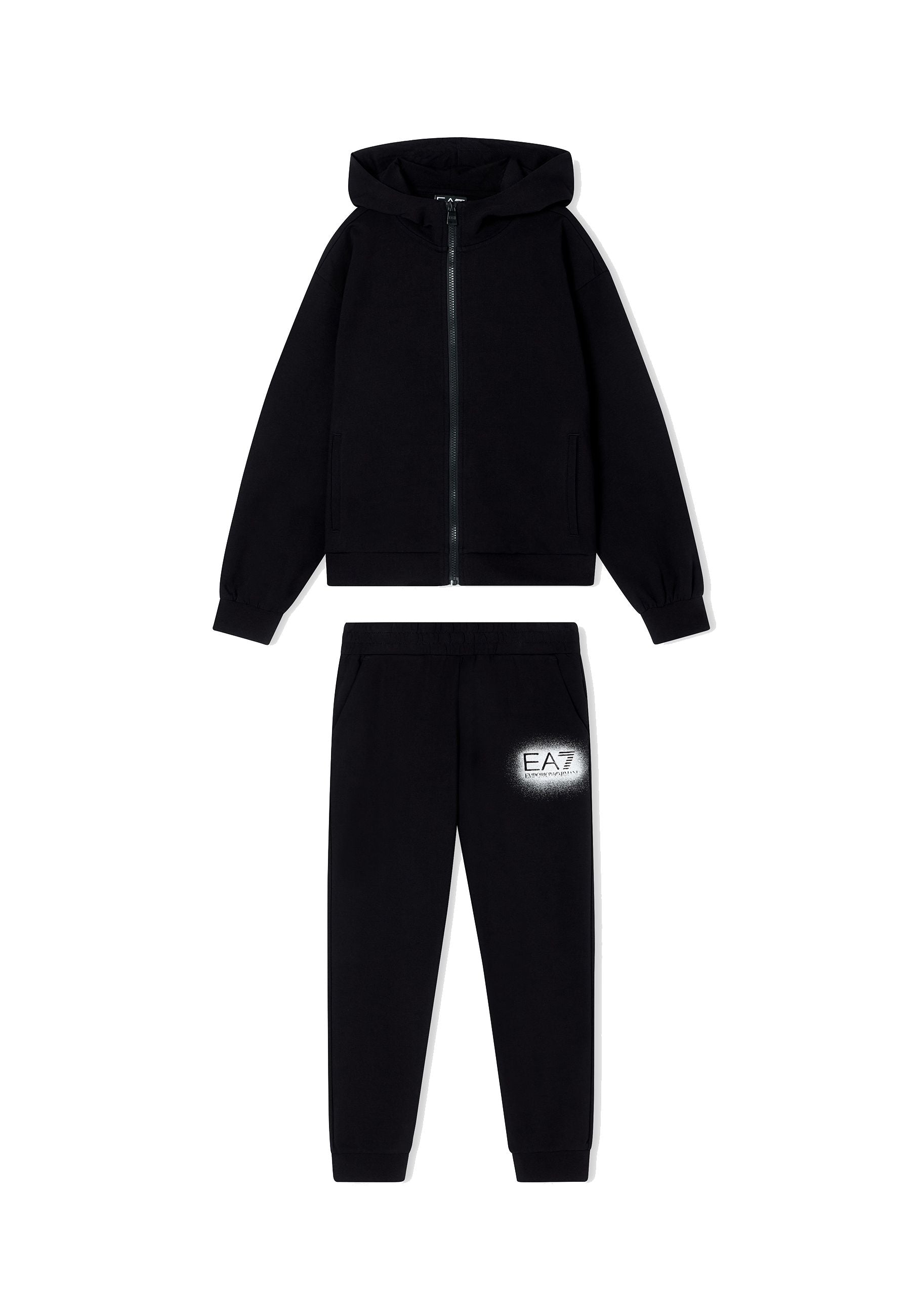 Tuta EA7 Emporio Armani realizzata in morbido cotone leggermente elasticizzato con felpa con zip e cappuccio e pantaloni jogger eleganti e confortevoli Il design è arricchito dal logo a contrasto effetto spray che dona un tocco femminile raffinato Bimbivip porta questa esclusiva proposta direttamente a casa tua garantendo qualità originalità e sicurezza Un partner storico affidabile nel panorama europeo dell’e-commerce e retail punto di riferimento per famiglie attente a marchi prestigiosi per un’esperienza d’acquisto appagante e senza pensieri