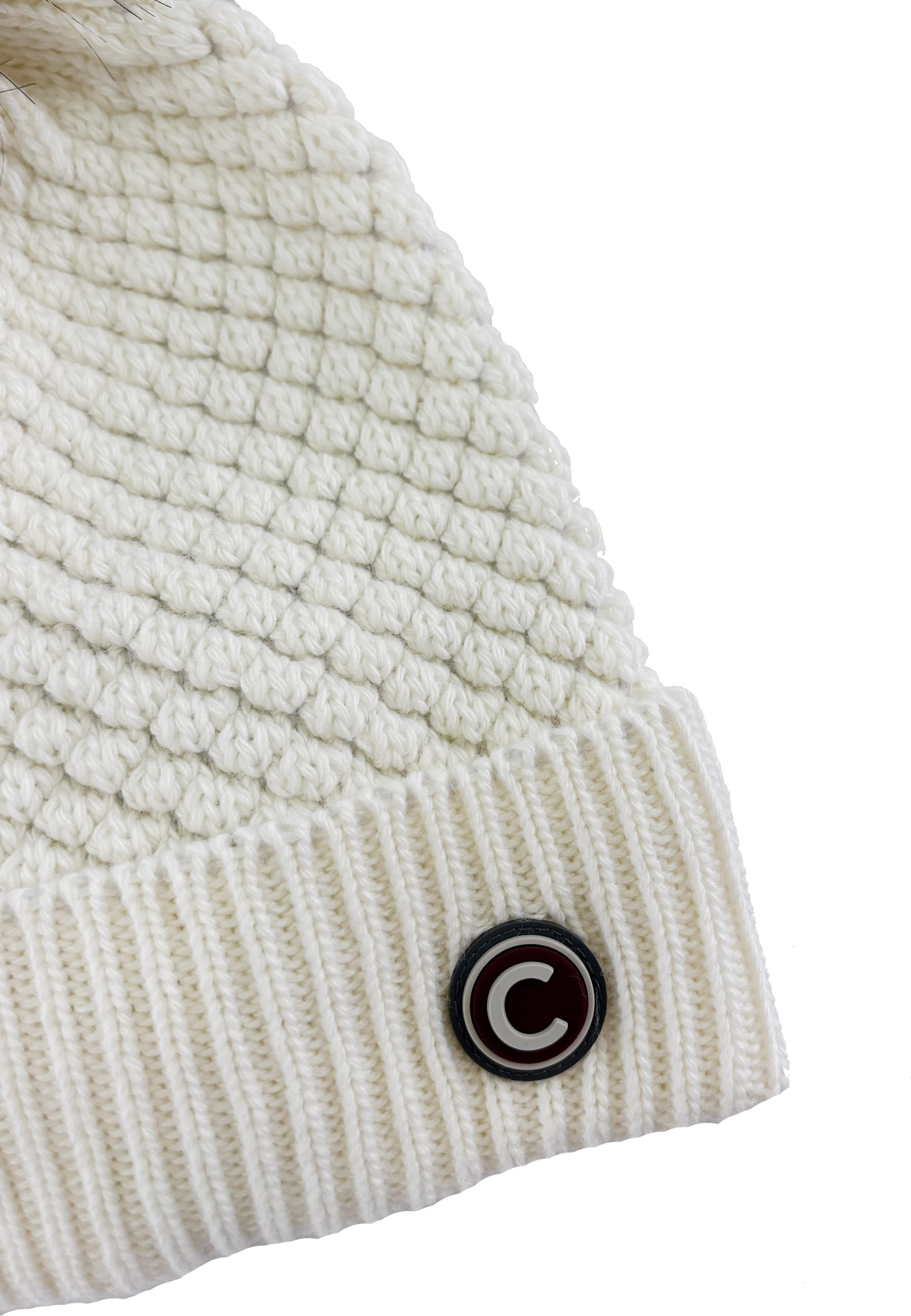 Colmar Cappello Bianco con Pon Pom in Pelliccia