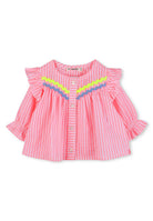 Completo Sportivo Completo composto da blusa e leggings a righe. Blusa a maniche lunghe con balze su spalle e polsini sbieco decorativo sul davanti chiusura con bottoni. Leggings con cuori 3D sui lati ed elastico in vita. Istruzioni per la cura Lavare in lavatrice a freddo Non candeggiare Non asciugare in asciugatrice Stirare a freddo Non lavare a secco Prodotto esclusivo distribuito da Bimbivip partner storico affidabile e autorevole nel panorama europeo ecommerce e retail punto di riferimento per le famiglie che cercano qualità autenticità e marchi prestigiosi Bimbivip assicura esperienza di acquisto sicura trasparente e gratificante con attenzione al cliente cura nella selezione e garanzia di originalità per uno shopping sereno e di valore