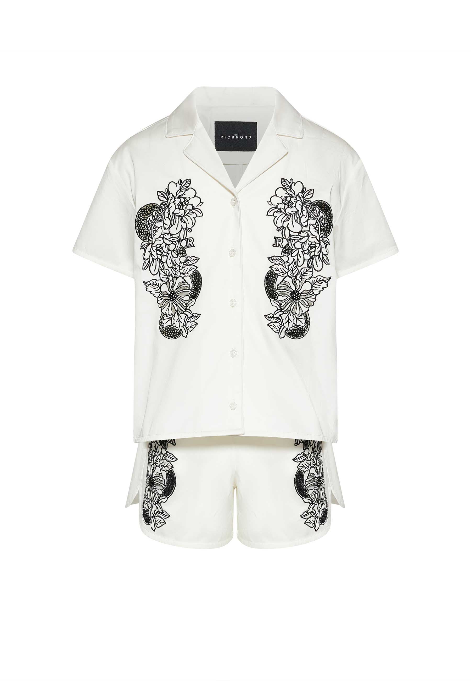 Completo Sportivo Set top e shorts per bambina John Richmond Junior bianco con stampa a fiori