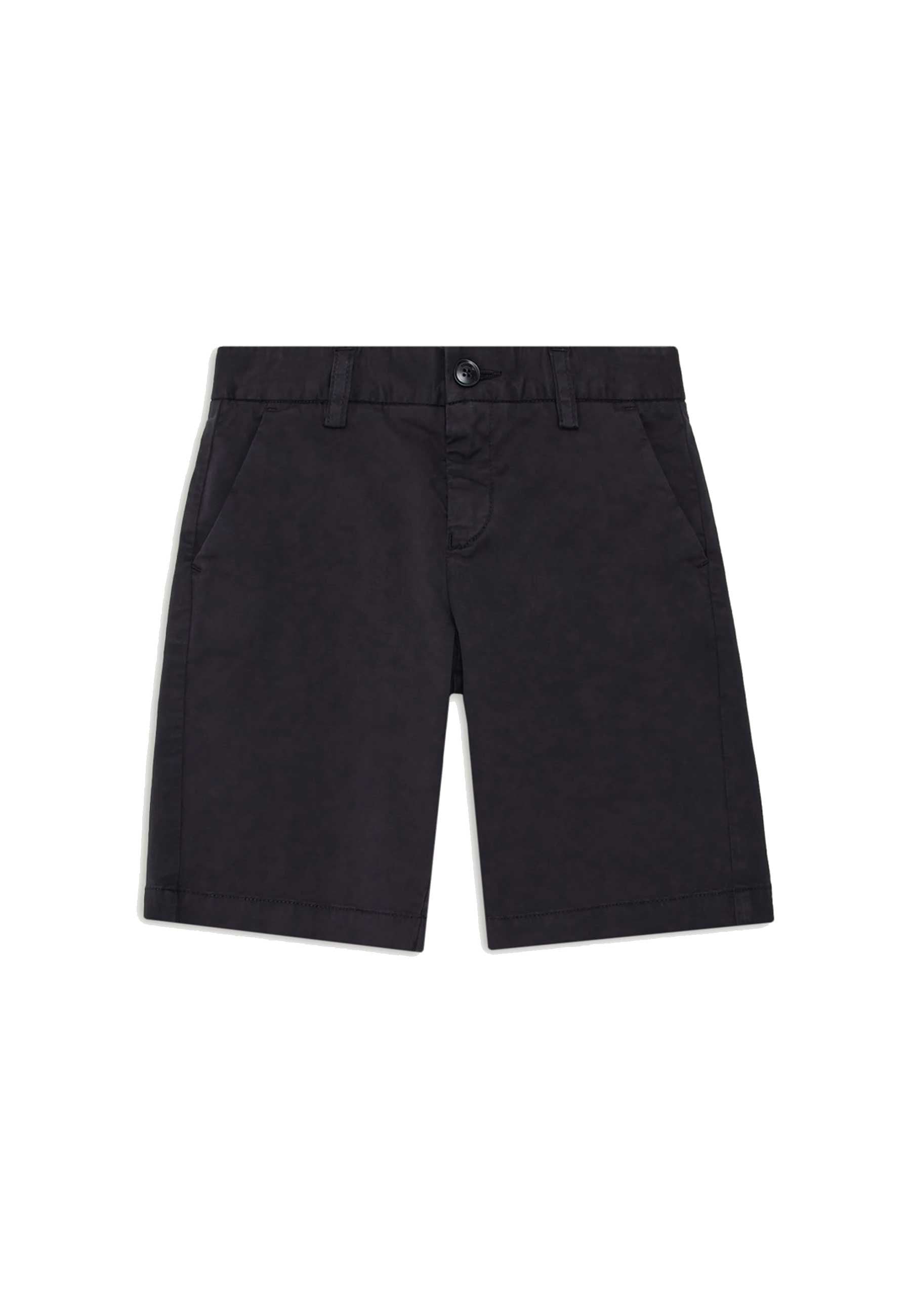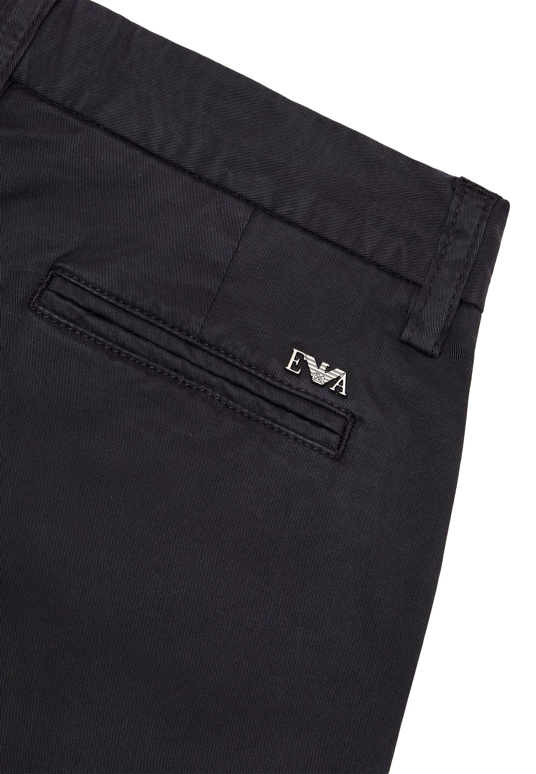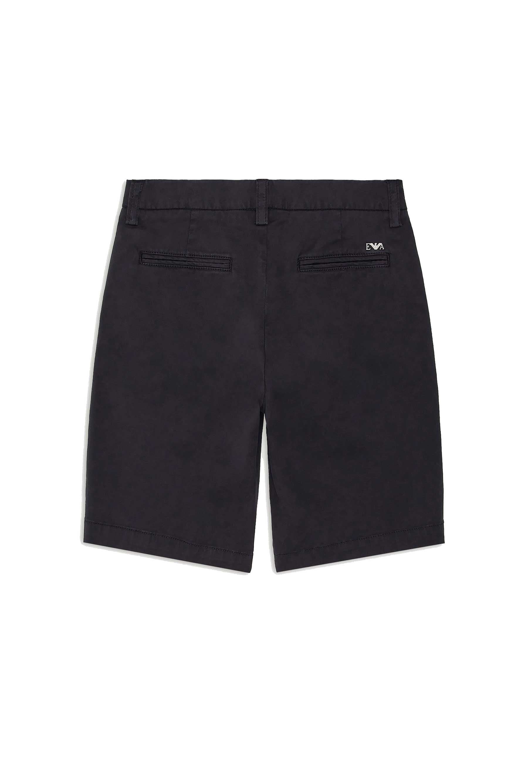 Bermuda modello chino in cotone stretch comodi resistenti eleganti versatili perfetti per i più piccoli design pulito e lineare colori sobri adattabili a qualsiasi stagione della linea Essential marchio prestigioso Emporio Armani distribuito in esclusiva da Bimbivip partner storico affidabile e autorevole punto di riferimento per famiglie attente alla qualità autenticità e originalità esperienza di acquisto sicura trasparente e gratificante con consegna rapida in 24/48h per l’Italia attenzione al cliente cura nella selezione garanzia di originalità per uno shopping sereno e di valore.Dettagli: modello chino vita con passanti tasche laterali tasche posteriori a filetto placchetta logo EA.Composizione: tessuto 97% cotone 3% elastan fodera 65% poliestere 35% cotone