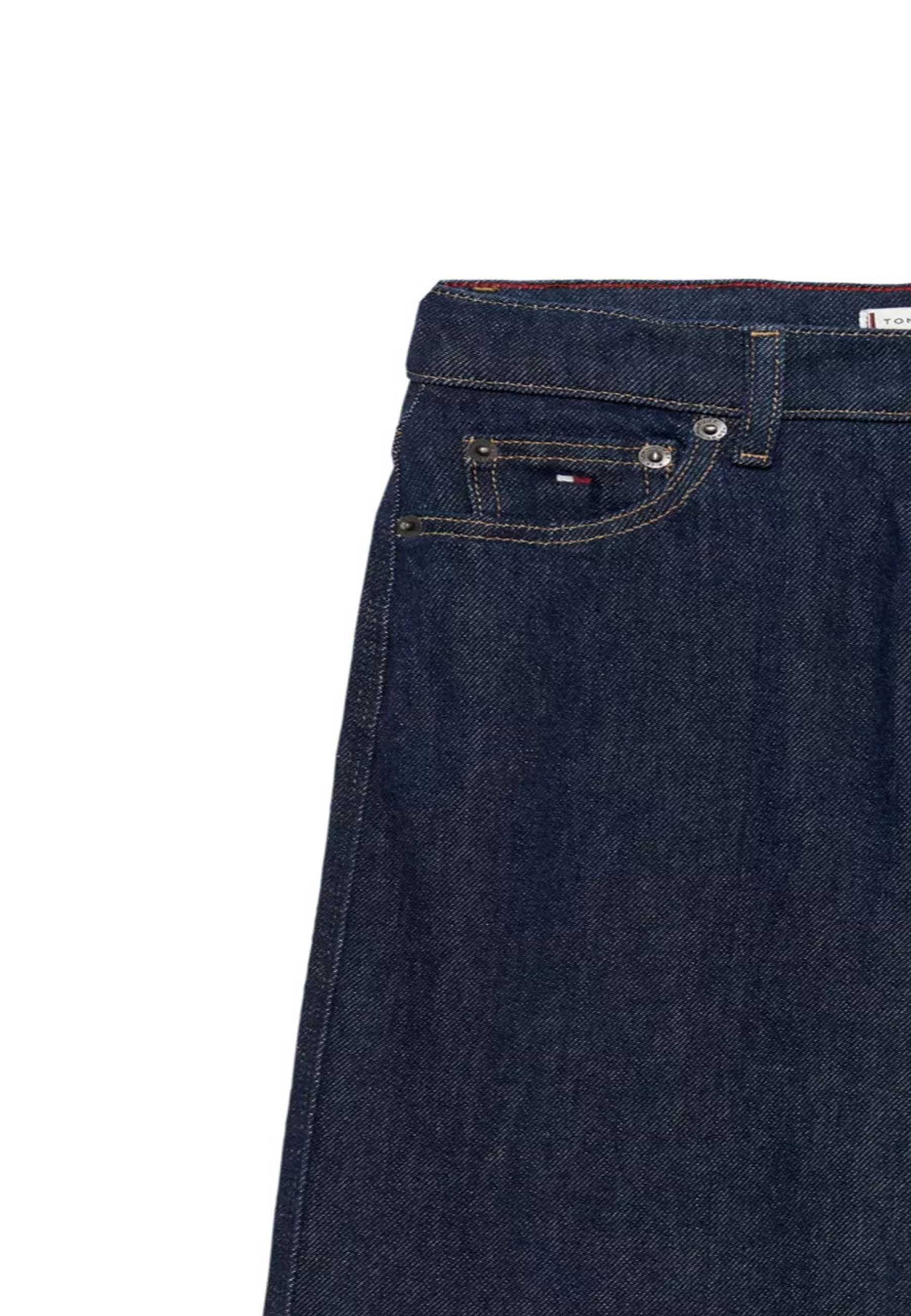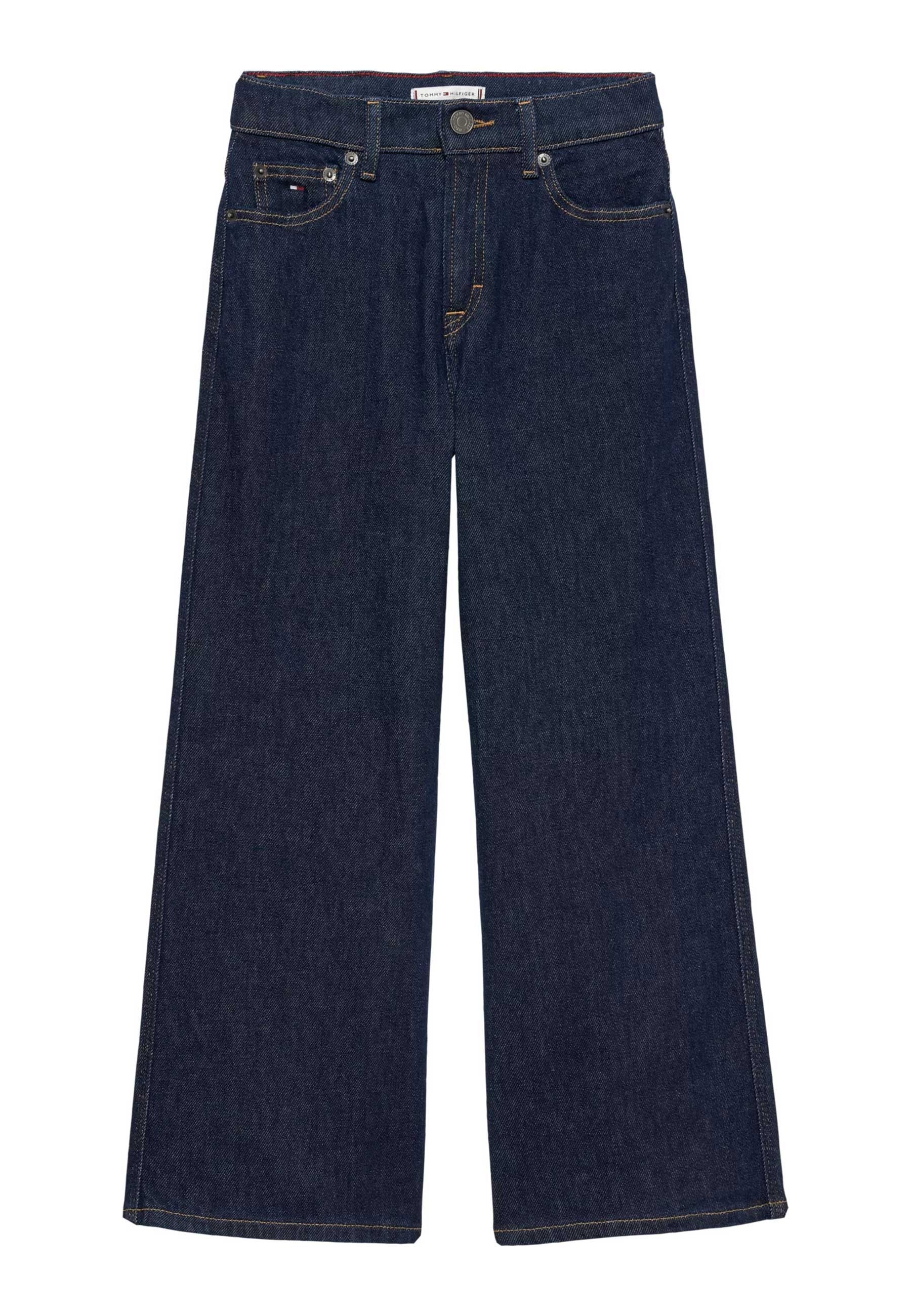 Jeans Esclusivo Tommy Hilfiger per bambine ragazze distribuito da Bimbivip partner storico affidabile e autorevole nel panorama europeo ecommerce e retail punto di riferimento per le famiglie che cercano qualità autenticità e marchi prestigiosi Bimbivip garantisce esperienza di acquisto sicura trasparente e gratificante con attenzione al cliente cura nella selezione e garanzia di originalità per uno shopping sereno e di valore Jeans realizzato in denim rigido a tinta unita che mantiene la forma con fibre di cotone rigenerate da vecchi rifiuti tessili gamba a campana leggermente aderente sui fianchi vita alta con chiusura a bottone e cerniera tre tasche frontali a filetto e due posteriori a filetto prodotto in parte in cotone riciclato combinazione perfetta di stile comfort sostenibilità e qualità