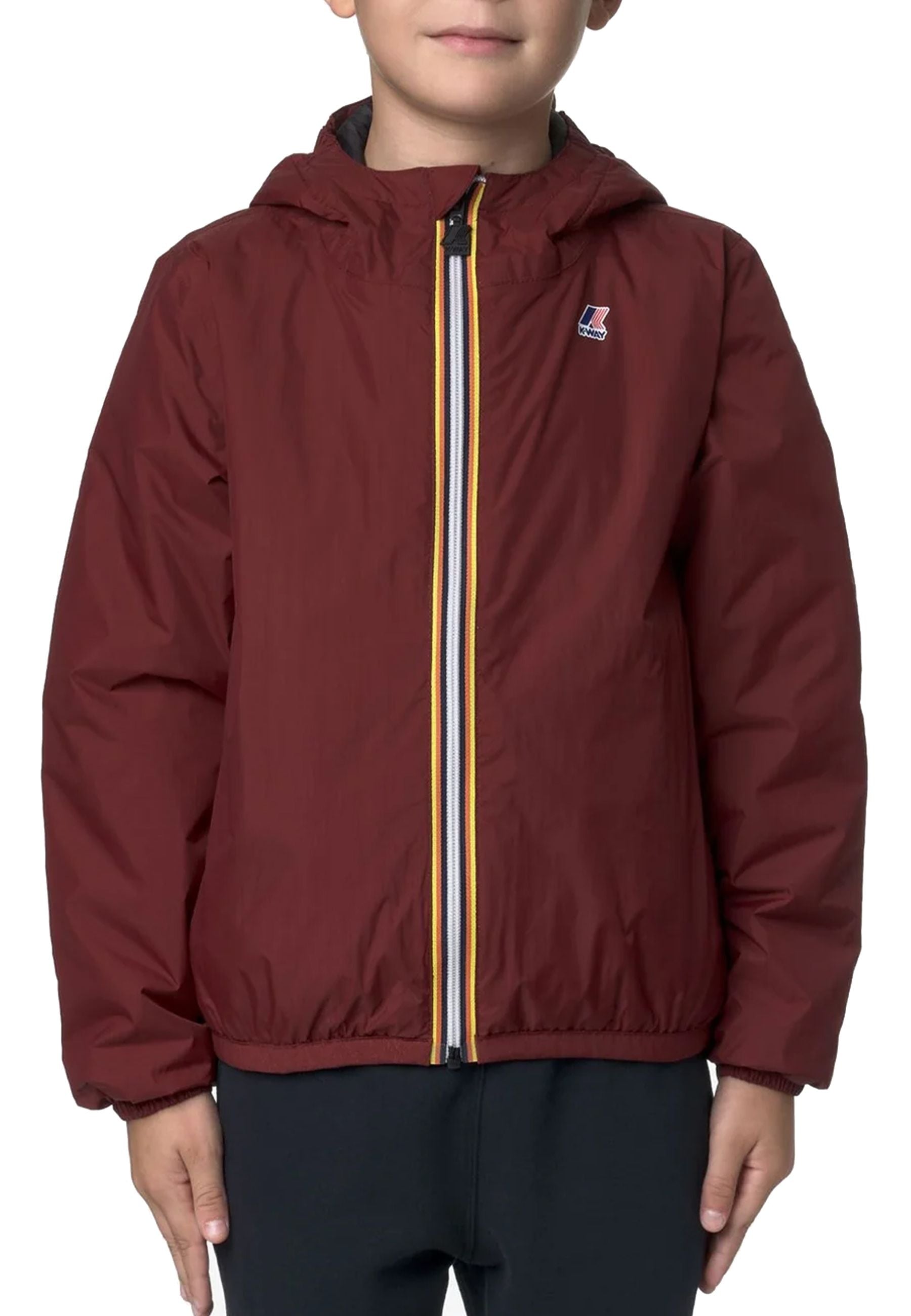 Giubbino corta iconica unisex leggera compatta ingegnosa simbolo dello stile pratico e vivace firmato K-Way pensata per bambini dinamici e curiosi realizzata in tessuto tecnico micro ripstop 4.0 innovativo robusto sostenibile interamente riciclato offre un'impermeabilità eccellente e una traspirazione bilanciata grazie a valori tecnici elevati che raggiungono 10000 mm e 10000 g al metro quadro in ventiquattro ore una vera barriera protettiva contro intemperie e umidità
