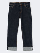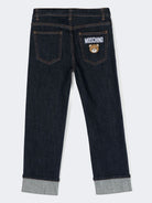Jeans Denim lungo con tasca Teddy Ricamata e cuciture a contrasto