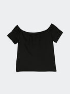 Top girocollo leggera in cotone elasticizzato tinta unita a manica corta. Ricamo Logo iconico frontale a contrasto colore